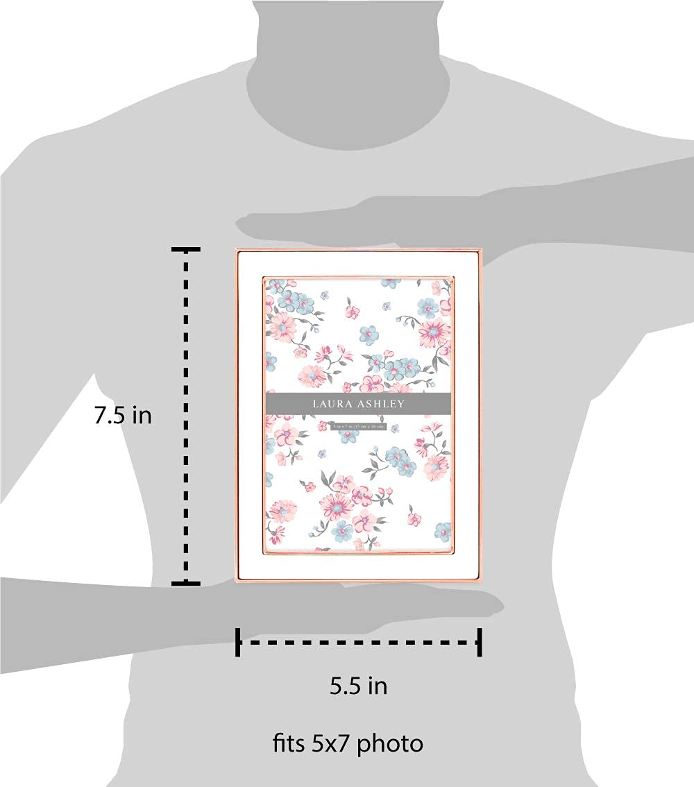 Laura Ashley 5x7 White Enamel Picture Frame, Rose Gold Metal Edge with Easel, for Countertop, Counterspace, Tabletop Display, Bo