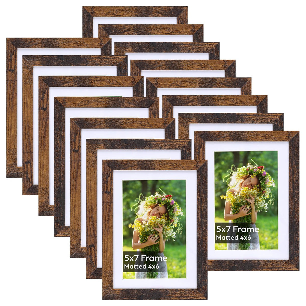Lyeasw 4x6 Picture Frame 15 Pack, Rustic Brown Bulk Photo Frames 5 x 7 Matted to 4 x 6 Pictures, Display 4x6 with Mat or 5x7 wit