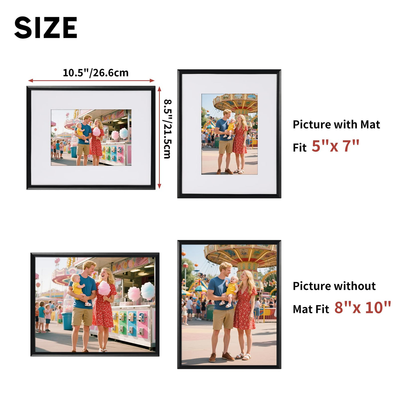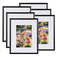 MEBRUDY 8x10 Picture Frame Set of 6, Display 5x7 Pictures With Mat or 8x10 Without Mat, Photo Frames for Tabletop or Wall, Black