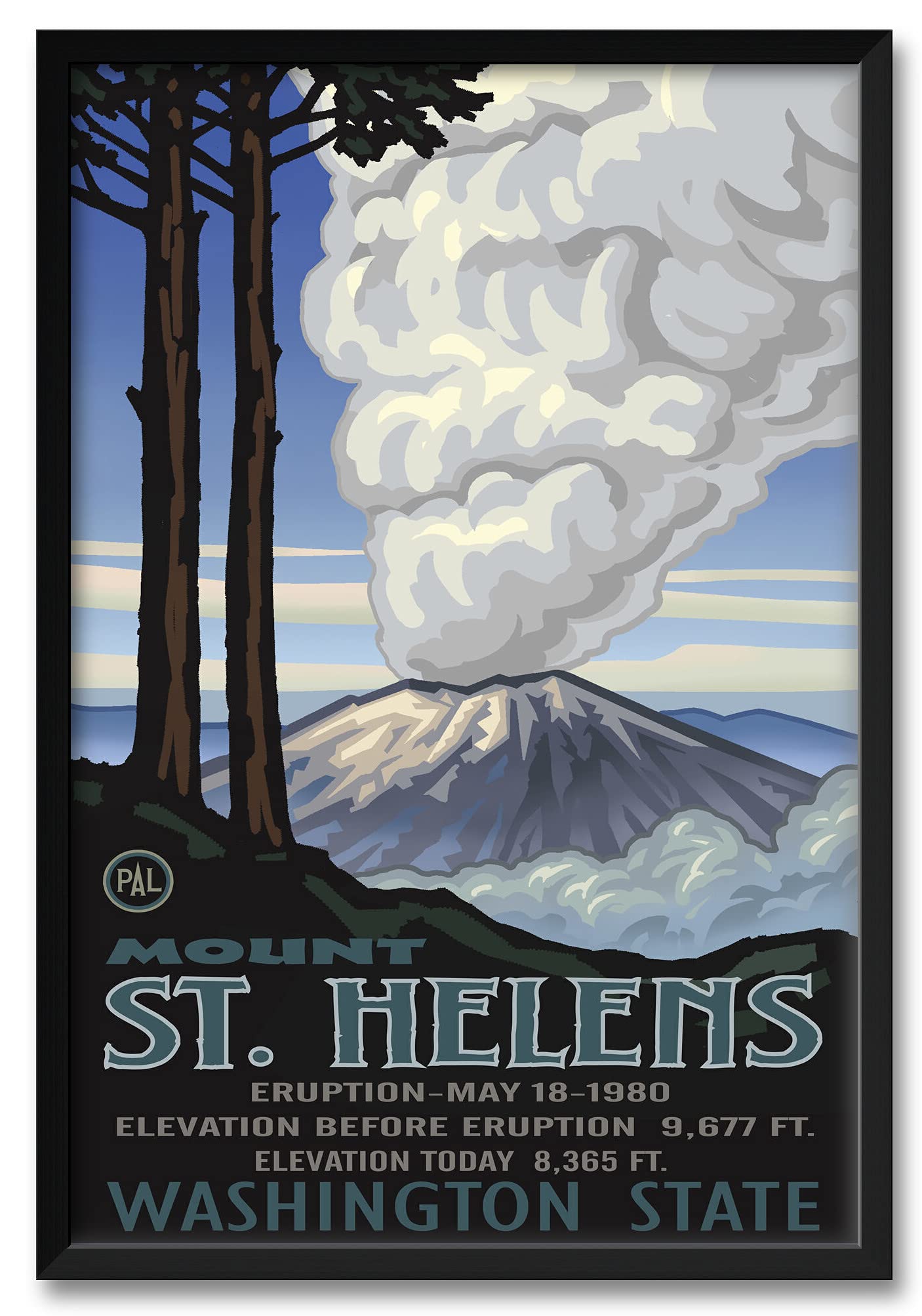 Mount St. Helen'S Washington Eruption Professionally Framed Art Print From Travel Artwork By Artist Paul A. Lanquist Framed Art