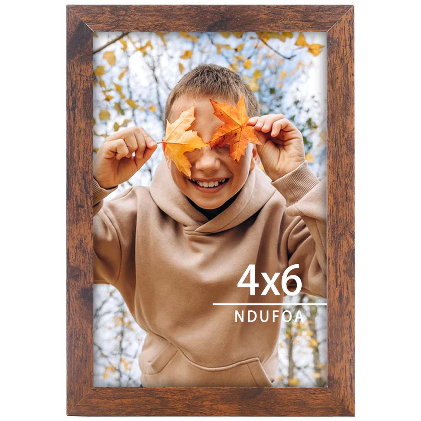 NDUFOA 4x6 Picture Frame, Rustic Square Frame Display 4x6 Photos, Poster Frame for Wall and Tabletop, Brown