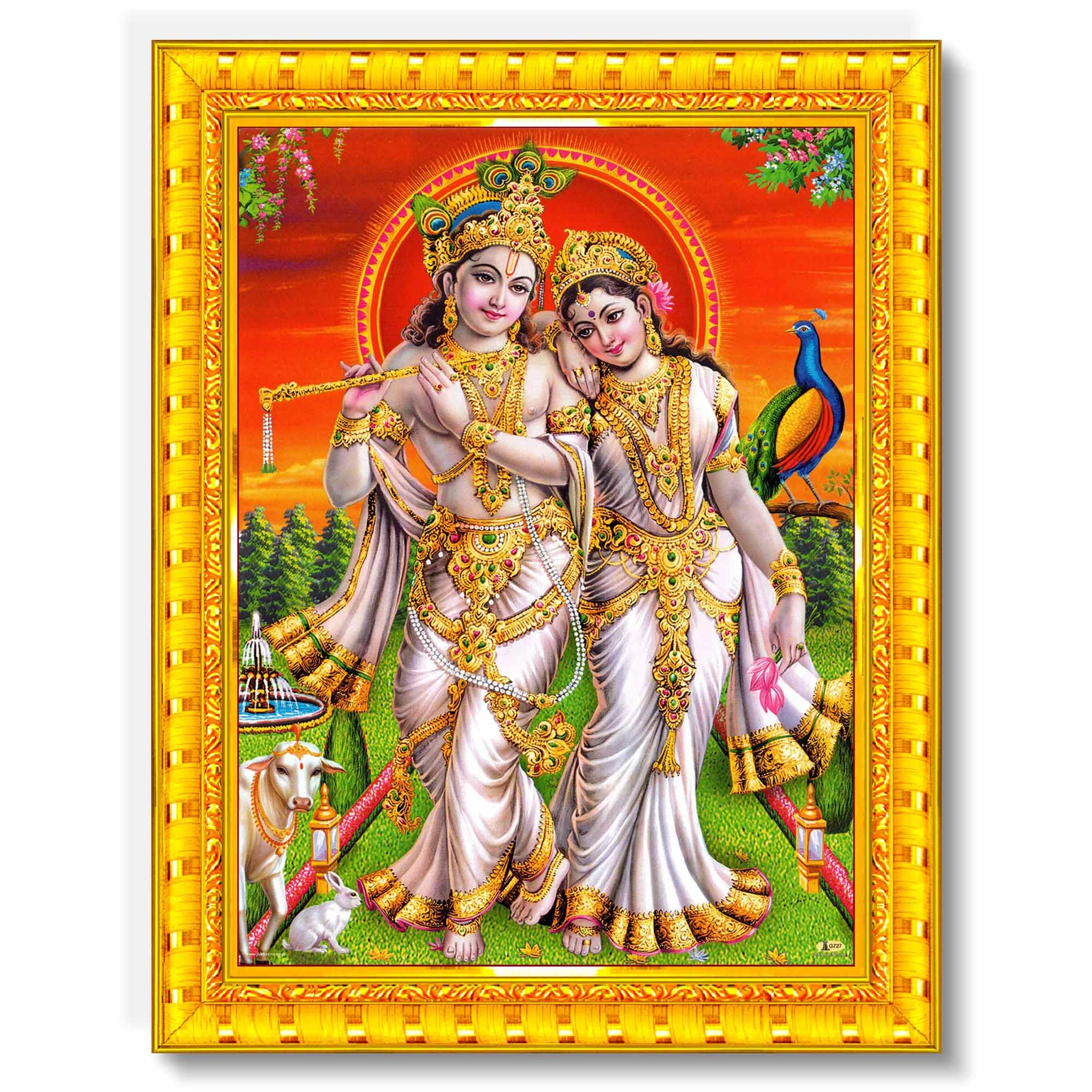 Pavan Photo Laminations Radha Krishna Photo Frame Radhe Radhakrishna Wall Painting Framed Home Decor (Wood,Matte,Gold,Big Size,1
