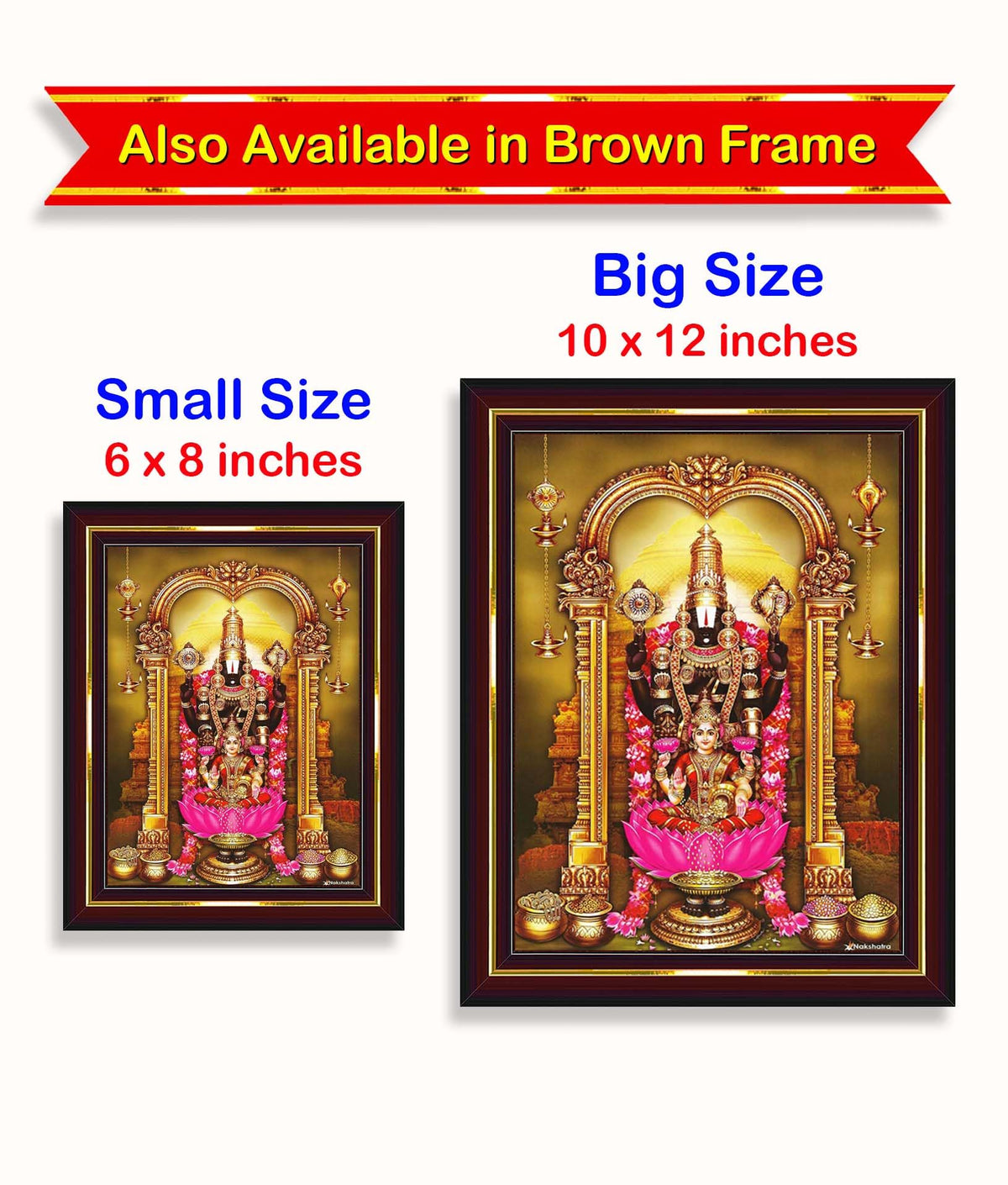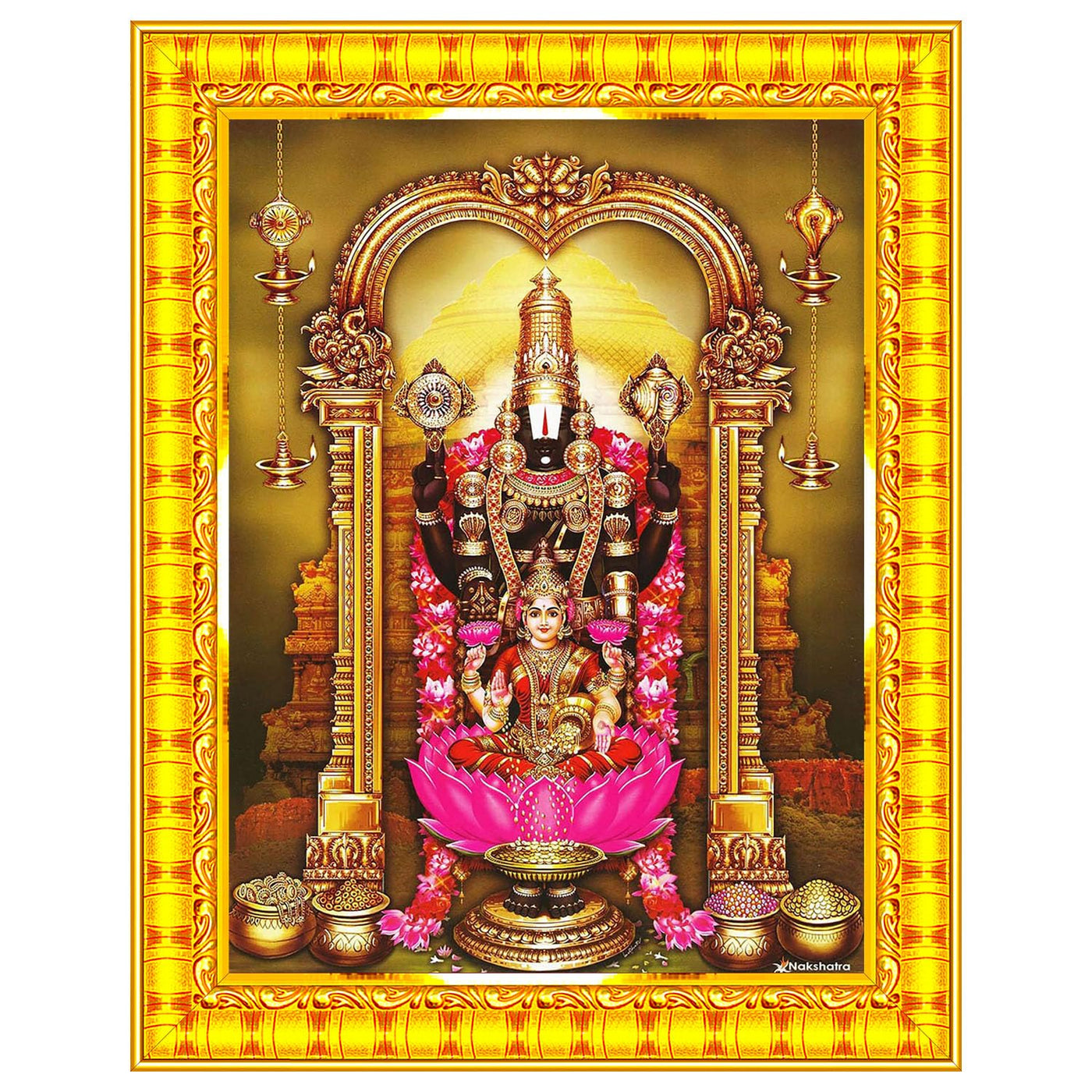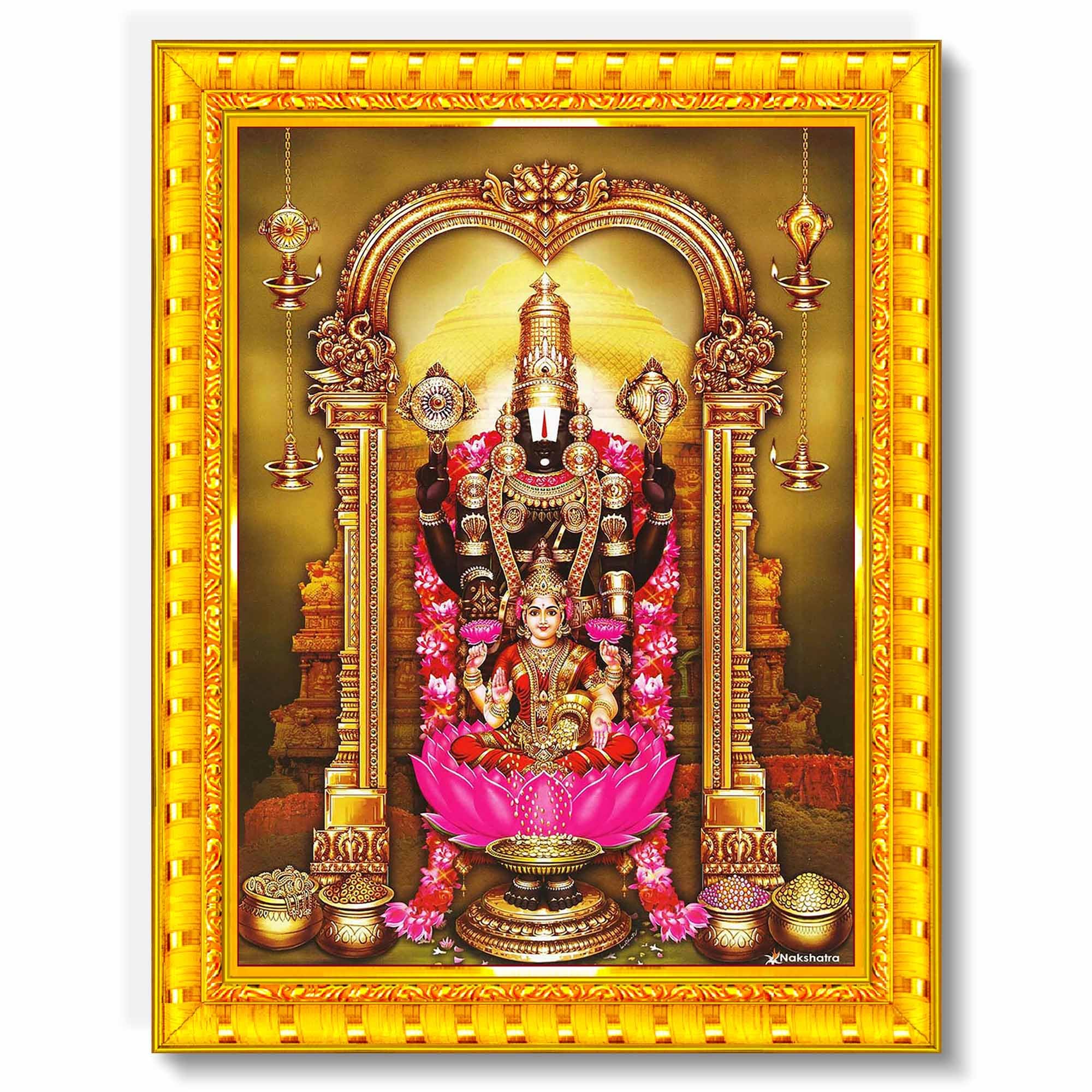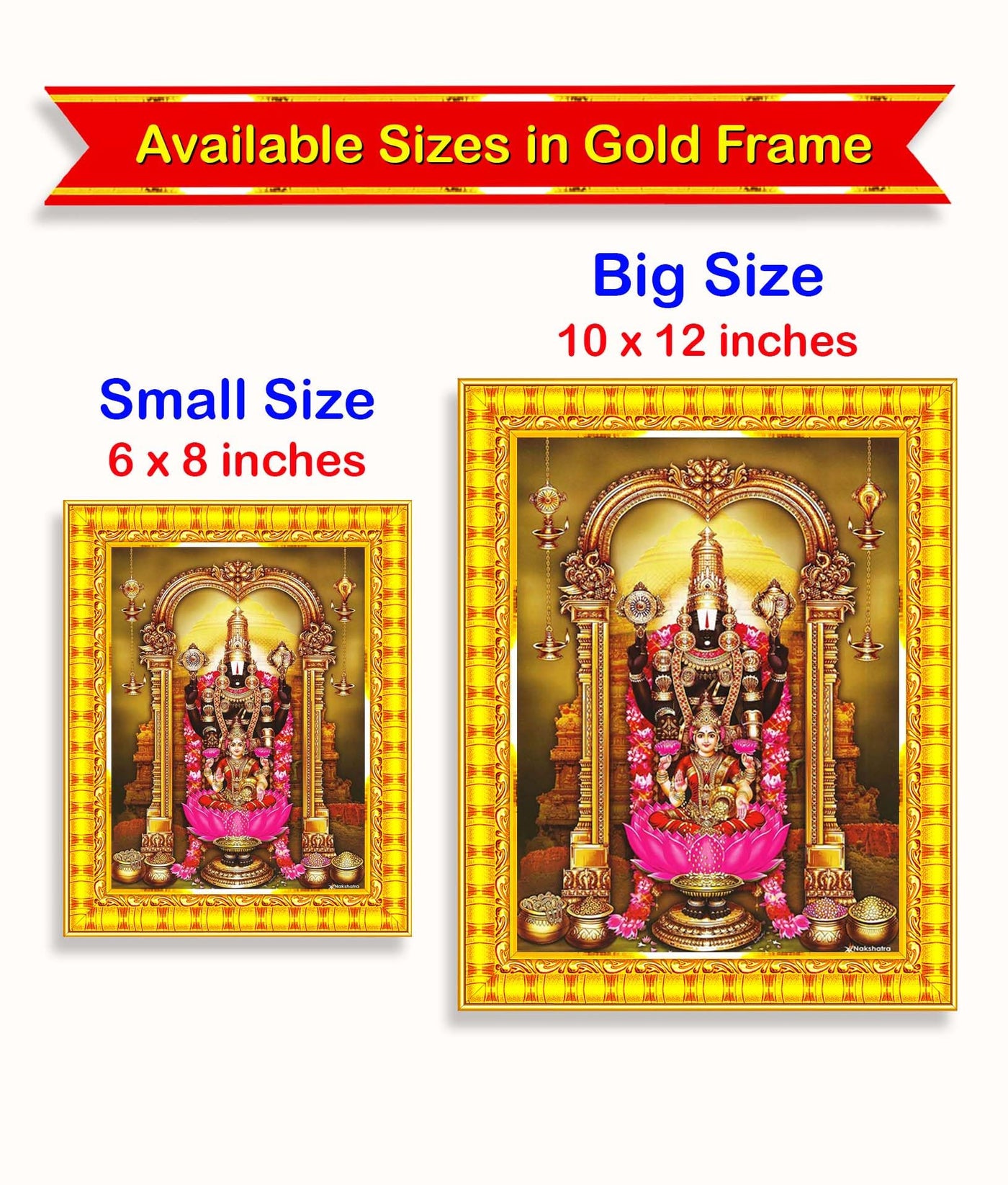 Pavan Photo Laminations Tirupati Balaji Lakshmi Venkateshwara Swamy Wall Painting Framed Home Decor (Wood,Matte,Gold,Small Size,