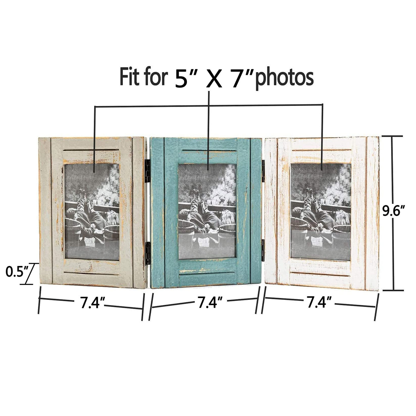 RiteSune Rustic Picture Frame 3 Folding 5X7 Triple Hinged Photo Frame Collage for Home Office Desk, Present for Christmas, New Y