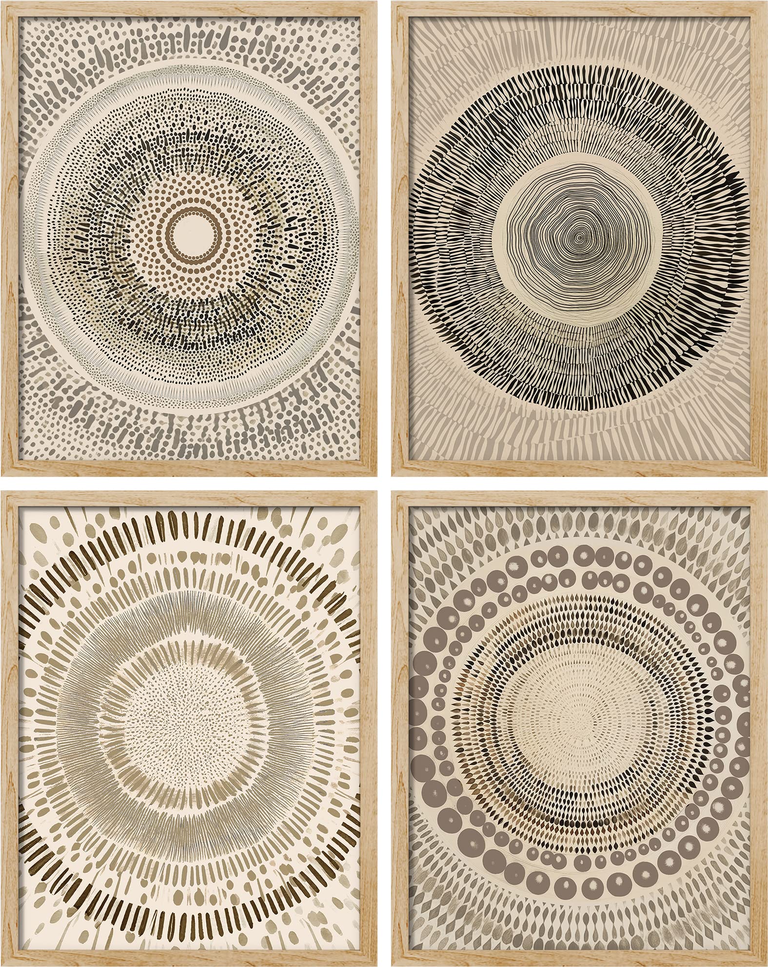 - Q: What is the design style of this framed art? A: This artwork features a beige abstract geometric circle stroke design, which is inspired by minimalist, folk, and mid-century styles, making it a versatile decorative piece.