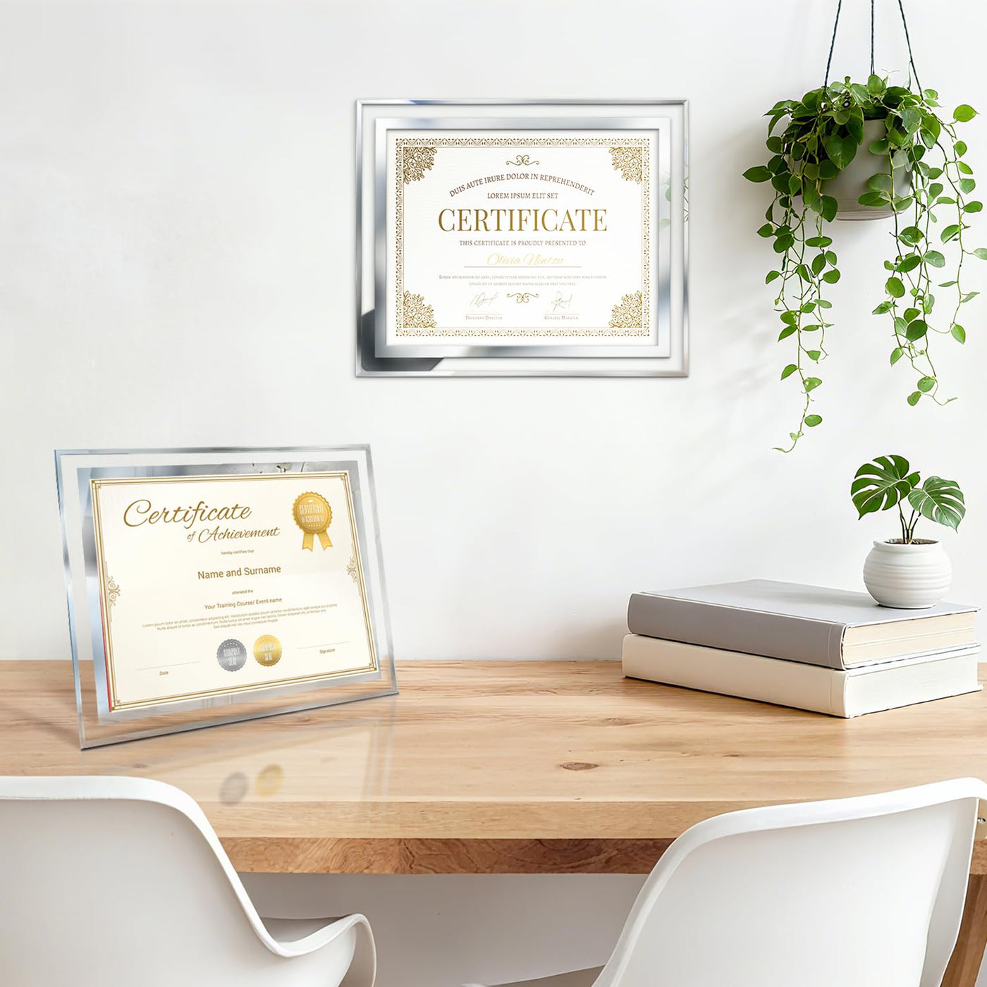 SIMONS SHOP 4 Pack Picture Frames 8.5 x 11 Frames for Certificates and Awards 8 1/2 x 11 Wall and Tabletop Frame Set, Clear wit