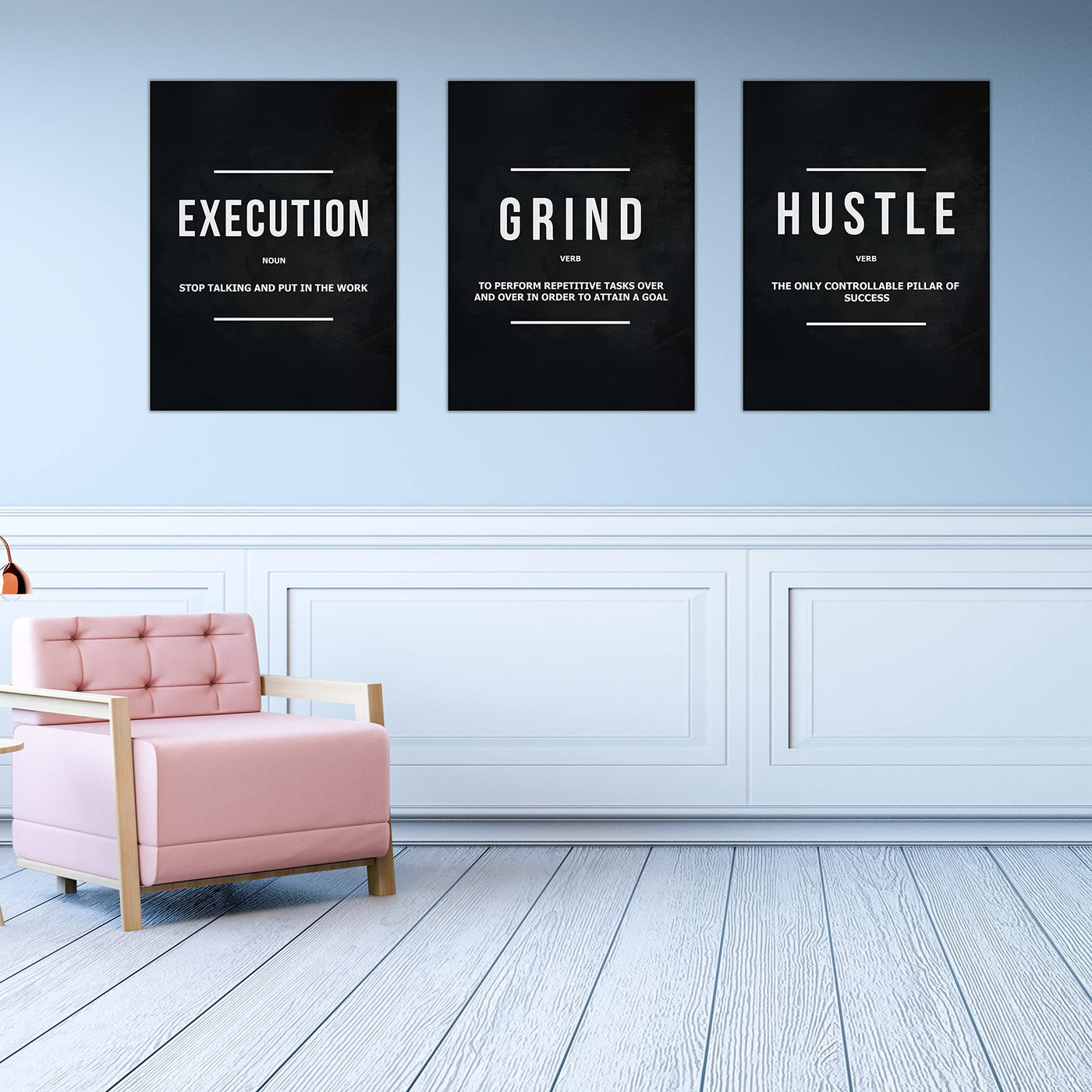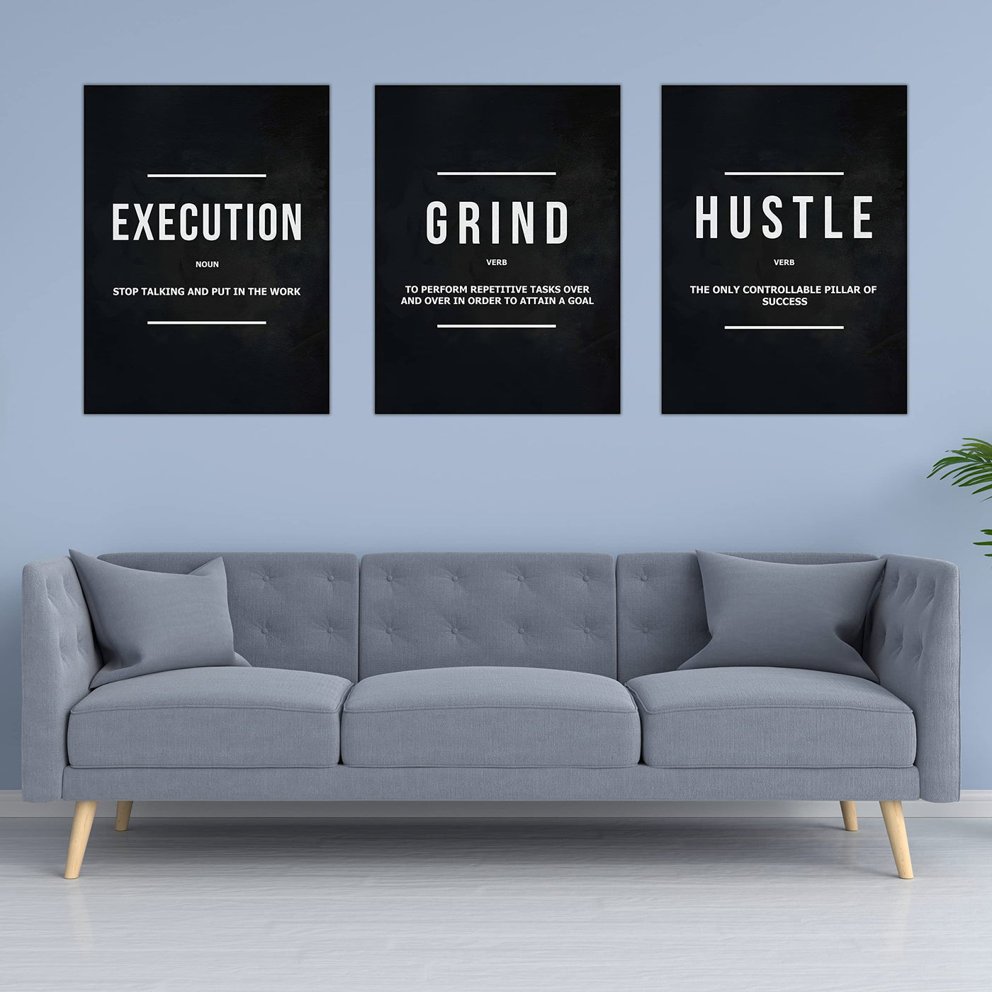 Success Canvas Painting Wall Art Quote Motivational Wall Art Execute Wall Decor 3 Pieces Black Poster Positive Inspirational Framed Artwork Prints Picture for Living Room Office [72''Wx 36''H]