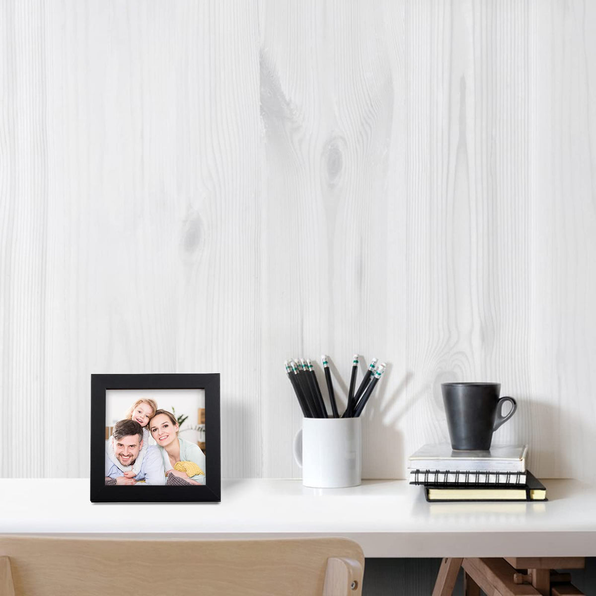 4x4 Picture Frame: 6 Pack Black Wood Grain Square 4x4 Picture Frames, finished with a rustic style accents. Giving you the distressed look. Its great for wall or farmhouse decor. | Material: Made of sturdy mdf wood, not easy to deform, no smell. And come with high definition organic glass(polymethyl methacrylate ), Shatterproof, Durability and Not fragile. | Use and Display: Backing fixed with 4 metal tabs. Easy to put photos in. Stands up well and not wobbly. Wall mountable display horizontally or vertically. Nice decor. on the shelf or blank wall. | Perfect Design: Great for displaying photos that something means so much, and can look at everyday! Also a excllent gifting to somebody. Well to decorate room with. | Protective Packing : Well packaging that helps ensure safe delivery. For personal use or as a gift to friends.