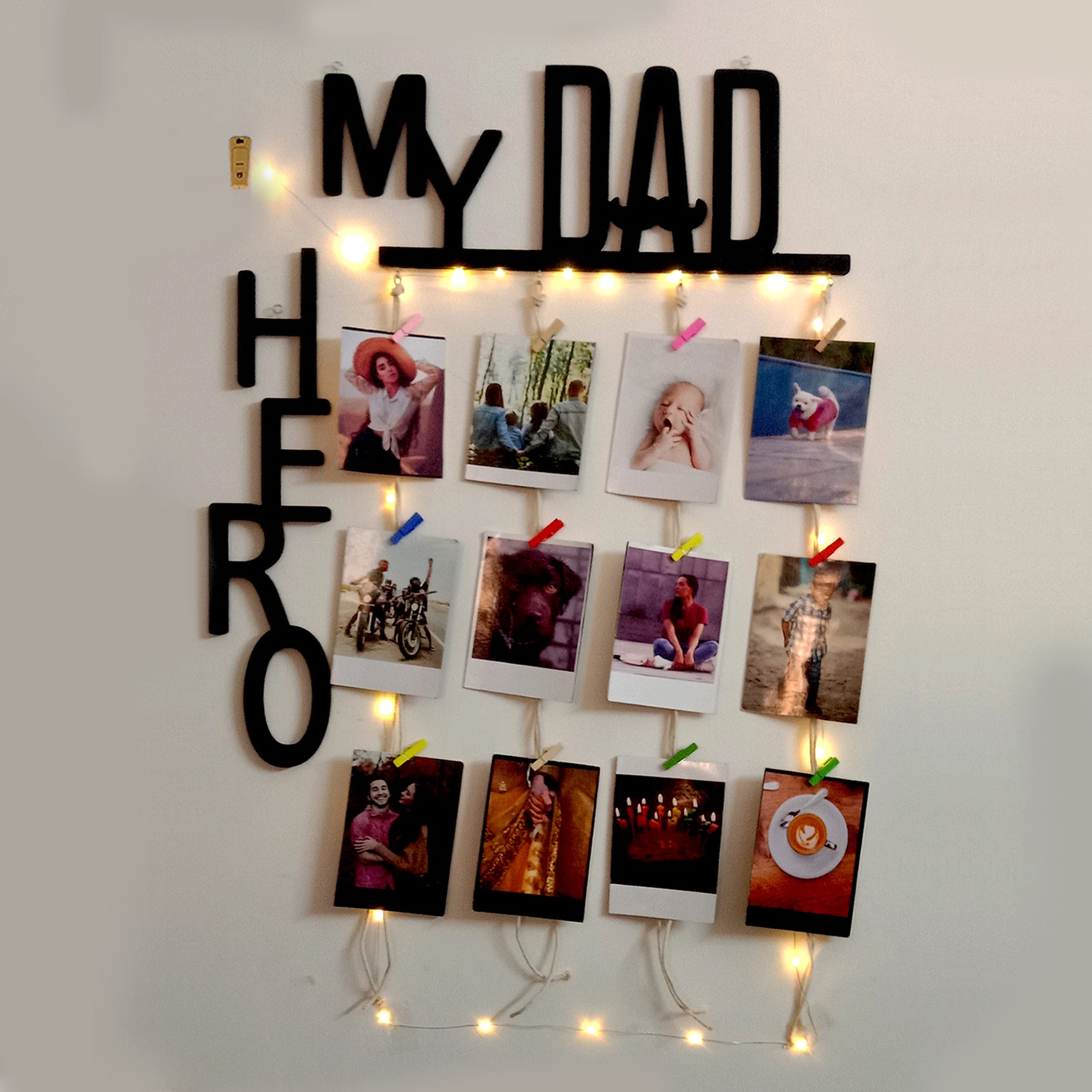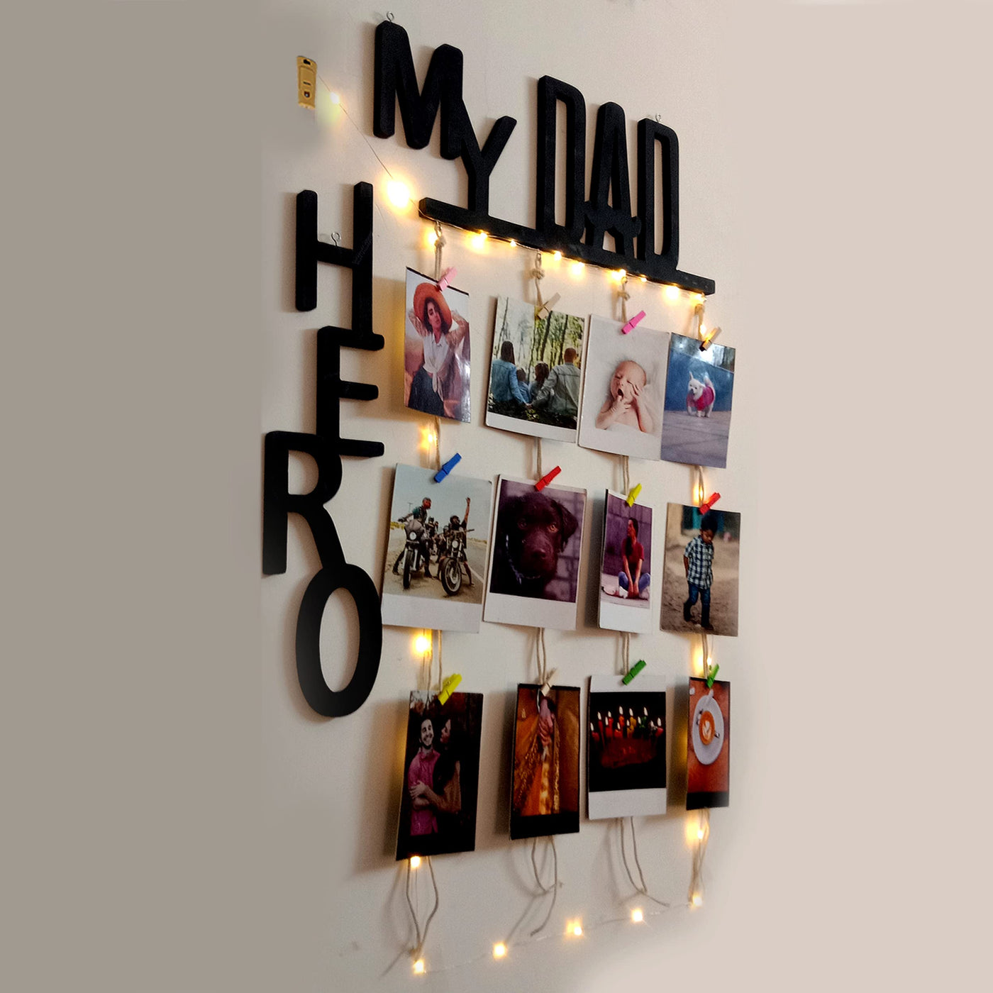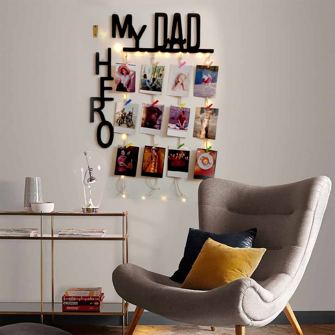 Vah Wooden Photo Frame With Led Light - Display Picture Collage Organizer With Clips (My Dad My Hero With Light)