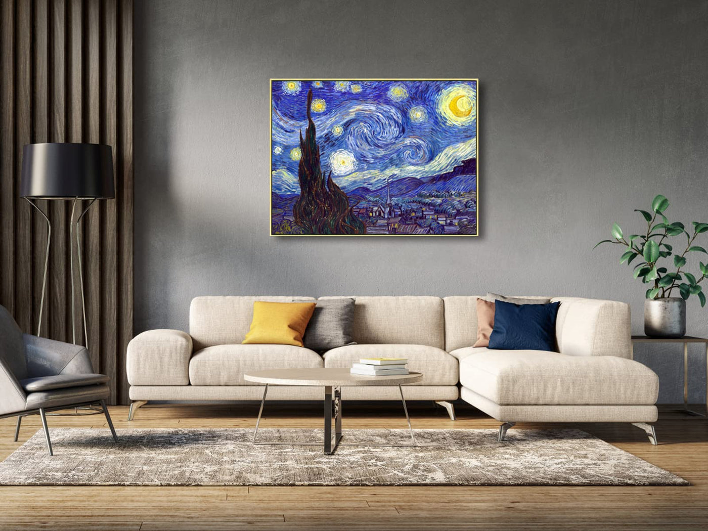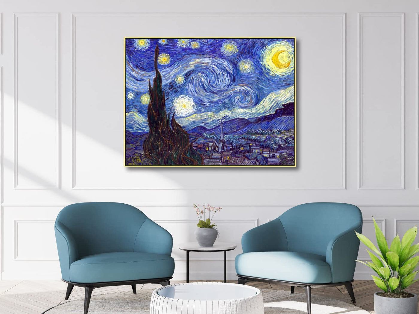 Wieco Art Large Framed Art Giclee Canvas Prints Of Starry Night By Vincent Van Gogh Paintings Reproduction Post-Impressionism Ar