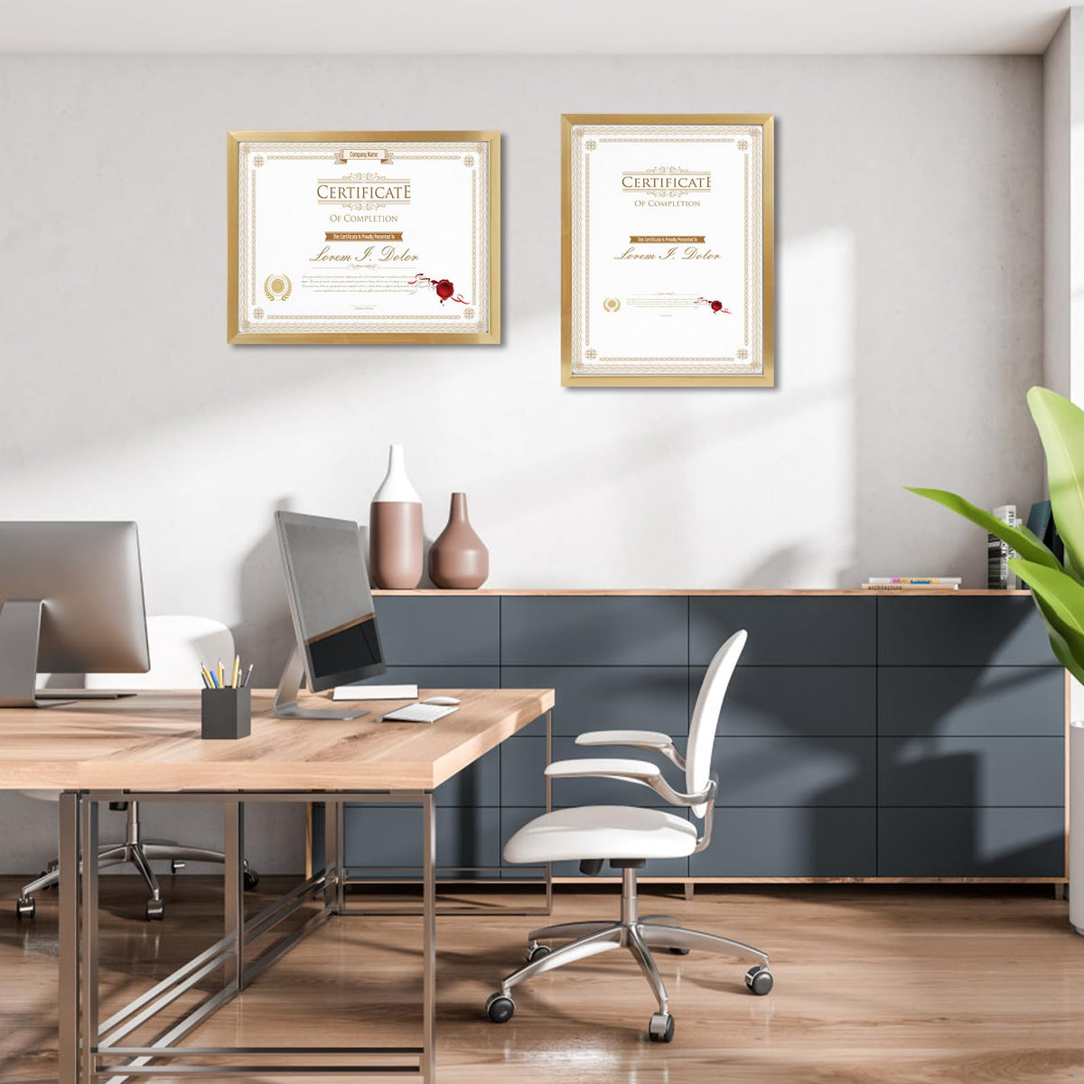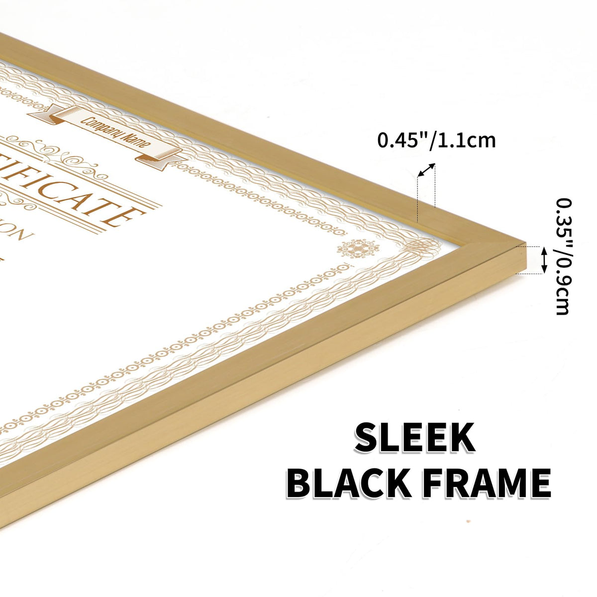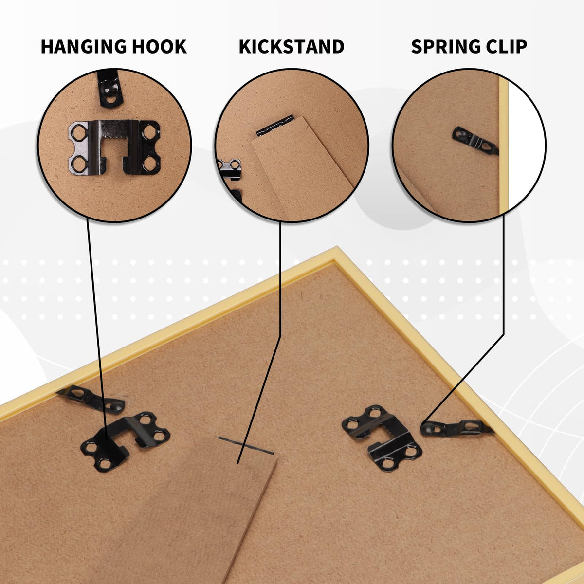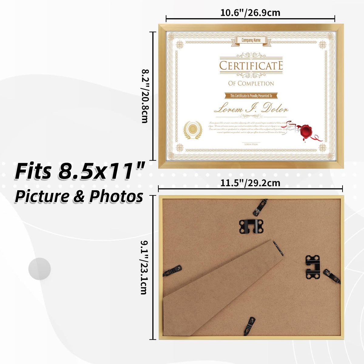 Multi picture frame set: The 16pcs 8.5x11 picture frames bulk provide a uniform and harmonious look for displaying certificates, documents, family photos, and more. They can be perfectly used for creating photo wall exhibitions or kept as spare photo frames. | Vertical or horizontal display: You have the flexibility to use these certificate frames 8.5x11 set of 16 to display your photos or certificates on the wall or on a table in any direction based on your preference and needs. | Lightweight design: The 8.5 by 11 picture frames boast a lightweight design that is not only simple and beautiful, but also offers better protection for your photos. Their lightness makes them safer to handle and less prone to damage. | Easy to use: These 8 1/2x11 frames typically come with user-friendly features like easy-open tabs at the back for quick loading and unloading of certificates or photos. They also have ready-to-use hooks and kickstand for hassle-free wall hanging or table top display. | Perfect gift option: Whether for a graduation, new office decortion, or a housewarming, this certificate frames 8.5 x 11 makes for a thoughtful and practical gift. Its versatile design and functionality make it suitable for anyone and for any occasion.