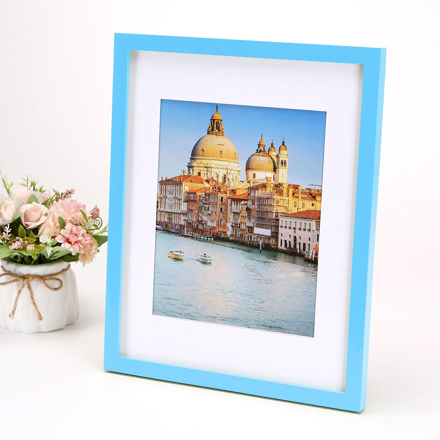 wyooxoo 11x14 Picture Frame Made of Solid Wood Blue Photo Frames Display Pictures 8x10 with Mat or 11x14 Without Mat Colorful Fr