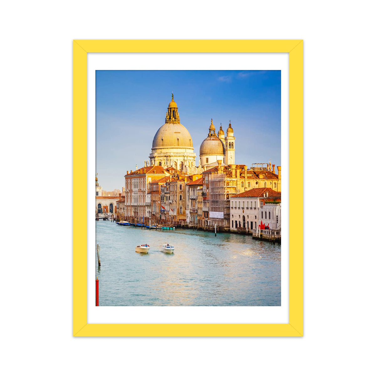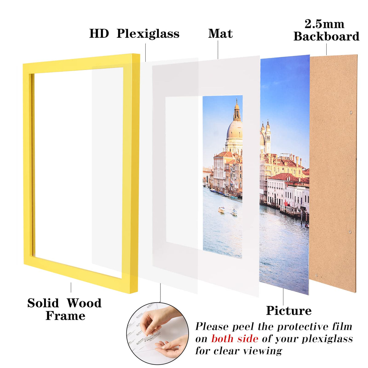 wyooxoo 12x16 Picture Frame Yellow Made of Solid Wood Photo Frames Display Pictures 11x14 with Mat or 12x16 Without Mat Colorful