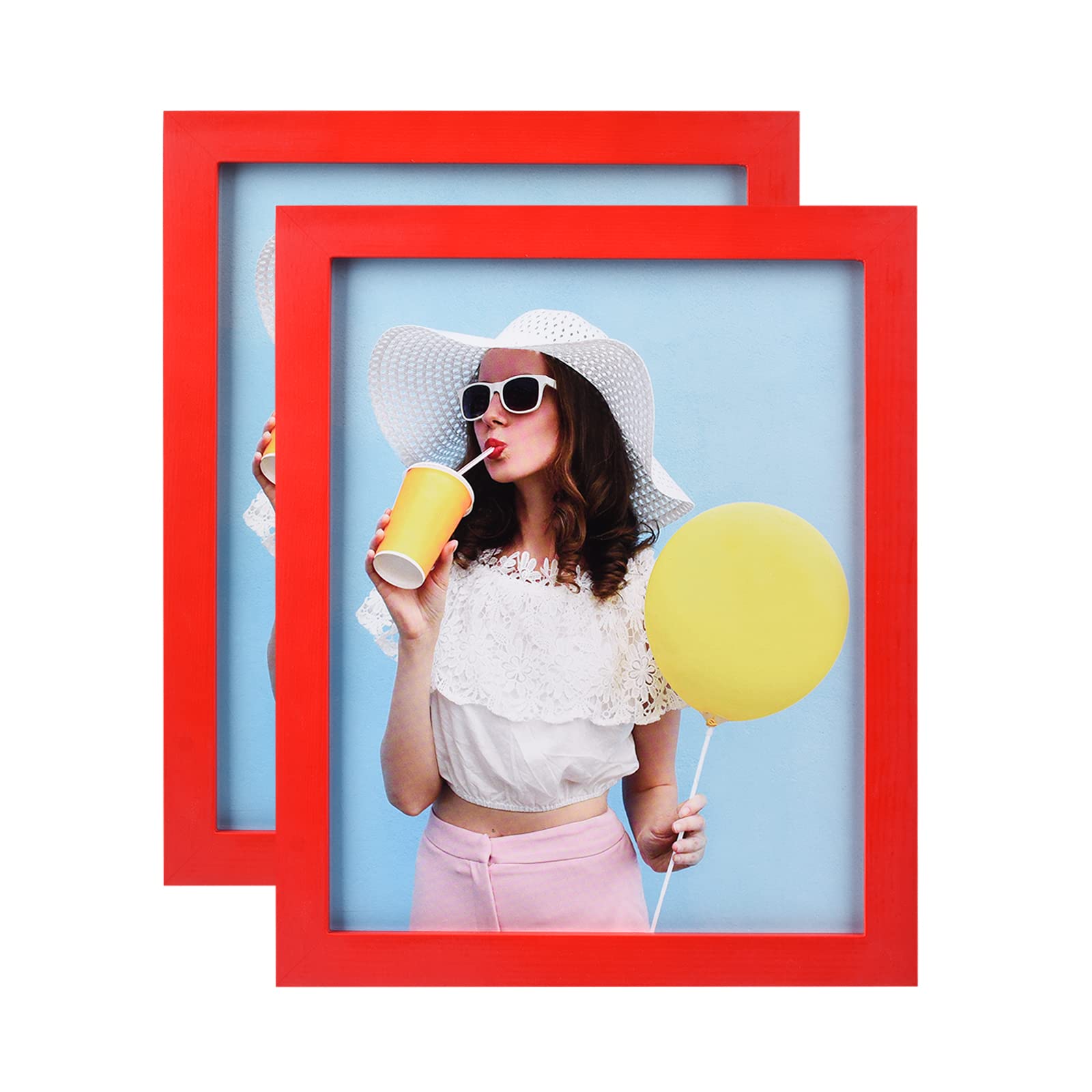wyooxoo 8x10 Picture Frames Set of 2 Made Of Solid Wood Red Photo Frames Colorful Frame with HD Plexiglass For Tabletop Display