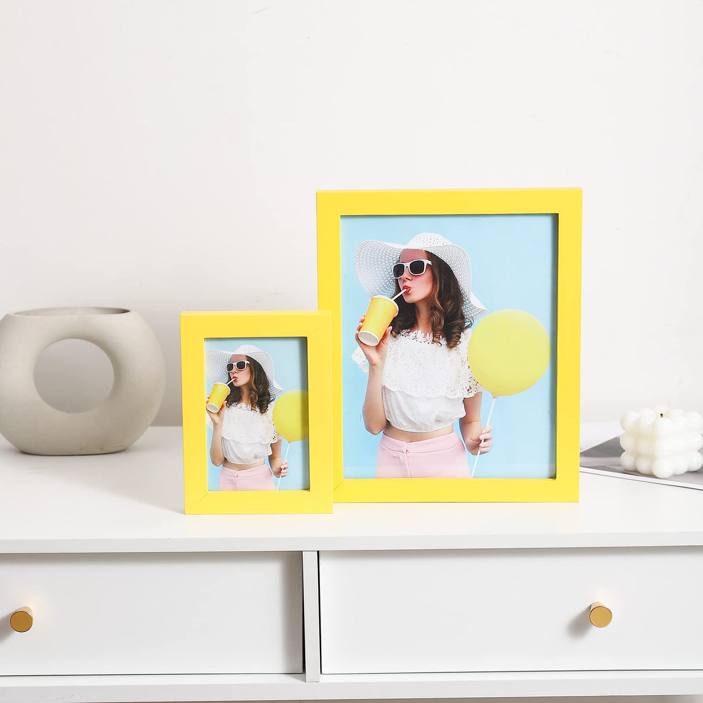 wyooxoo 8x10 Picture Frames Set of 2 Made Of Solid Wood Yellow Photo Frames Colorful Frame with HD Plexiglass For Tabletop Displ