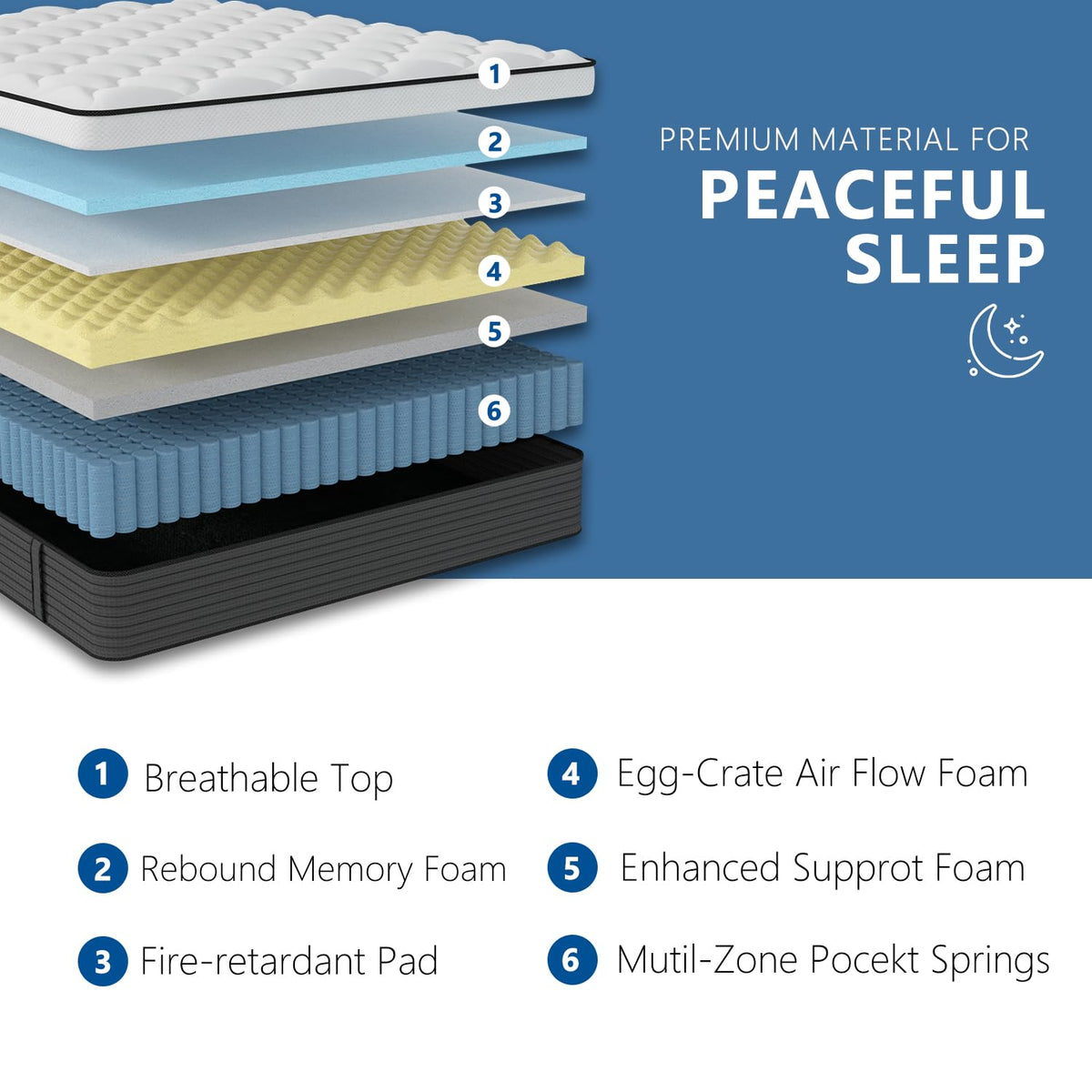 - Q: What materials are used in the construction of this mattress? A: This mattress features a combination of memory foam and an advanced pocket spring coil system, ensuring optimal support and comfort.