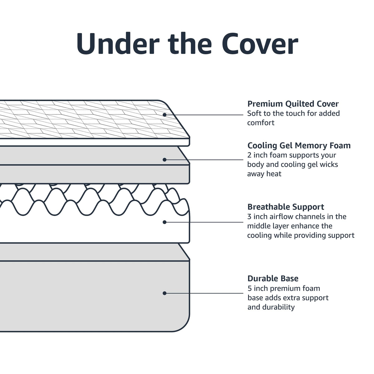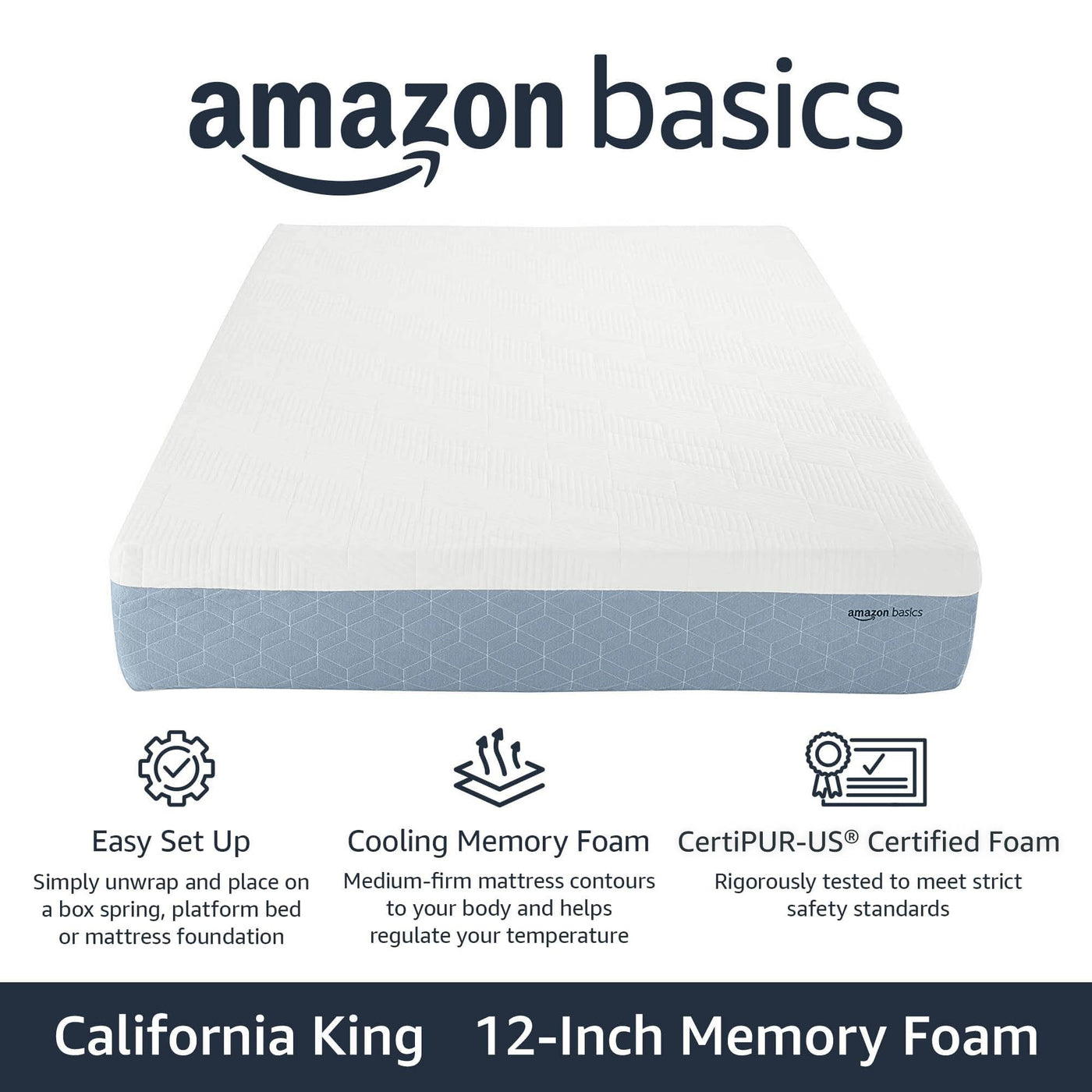 - Q: What are the dimensions of the Amazon Basics Gel Memory Foam Mattress? A: The mattress measures 84 x 72 x 12 inches, making it suitable for California King beds.