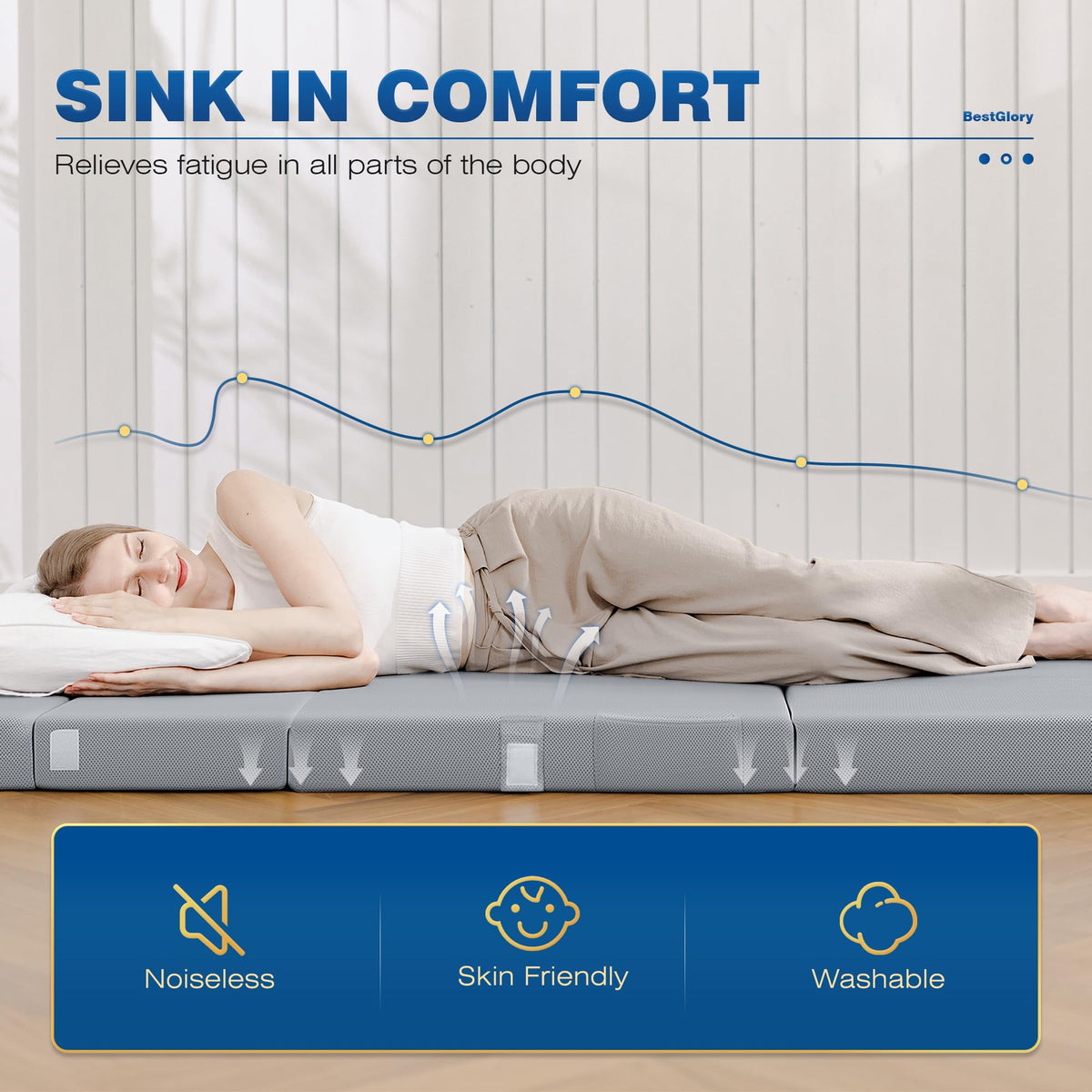 - Q: What sizes are available for the BestGlory Queen Foldable Mattress? A: The BestGlory Queen Foldable Mattress is available in full, twin, queen, and single sizes to accommodate various sleeping needs.
