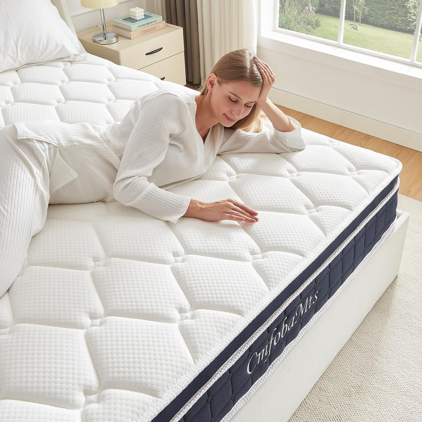 Cmfobamts Twin Mattress, 10 Inch Memory Foam Hybrid Mattress In A Box With Independent Spring For Motion Isolation And Pressure