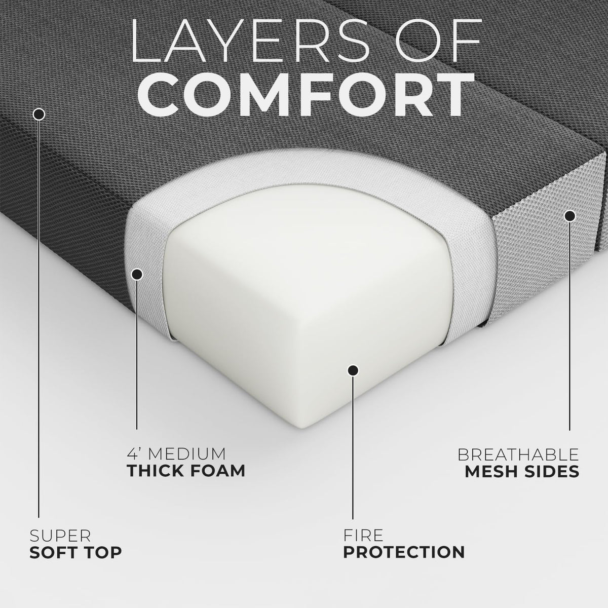 Cozzzi Foldable Mattress Queen Size For Floor And Traveling With Removable Cover - Lightweight And Portable Folding Mattress For