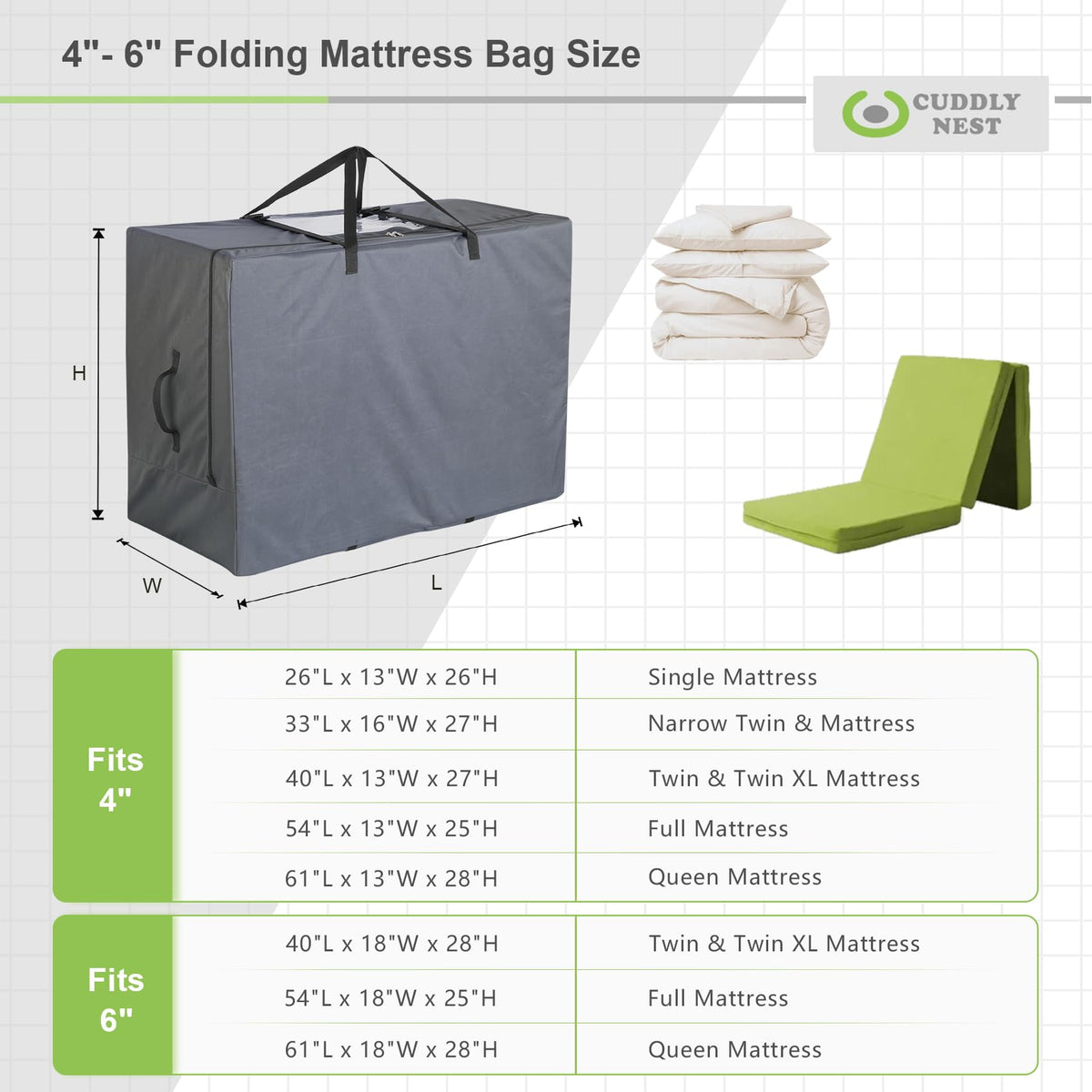 Cuddly Nest Folding Mattress Storage Bag - Heavy Duty Carry Case For Tri-Fold Guest Bed Mattress (Fits 6 Inch Full Mattress, Gra