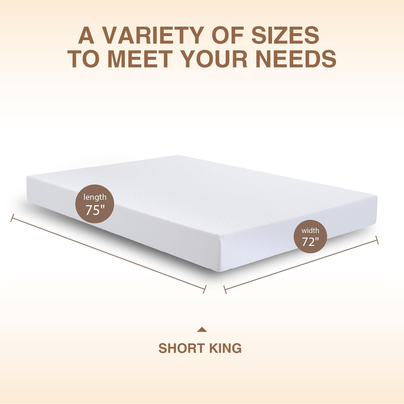 Dyonery Rv Mattress Short King, 10 Inch Memory Foam Camper Mattress Fiberglass Free Bed In A Box Made In Usa Certipur-Us Certifi