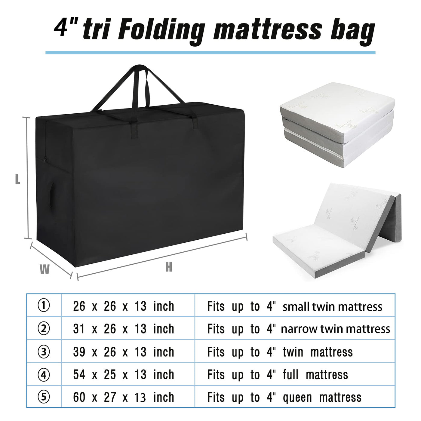 Jungda Folding Mattress Storage Bags,Trifold Memory Foam Mattress Case,Portable Carrying Bag For 4'' Twin Size Tri Fold Mattress