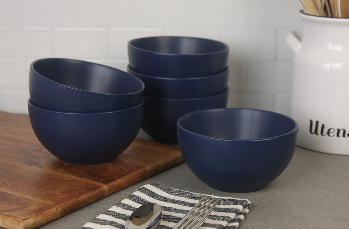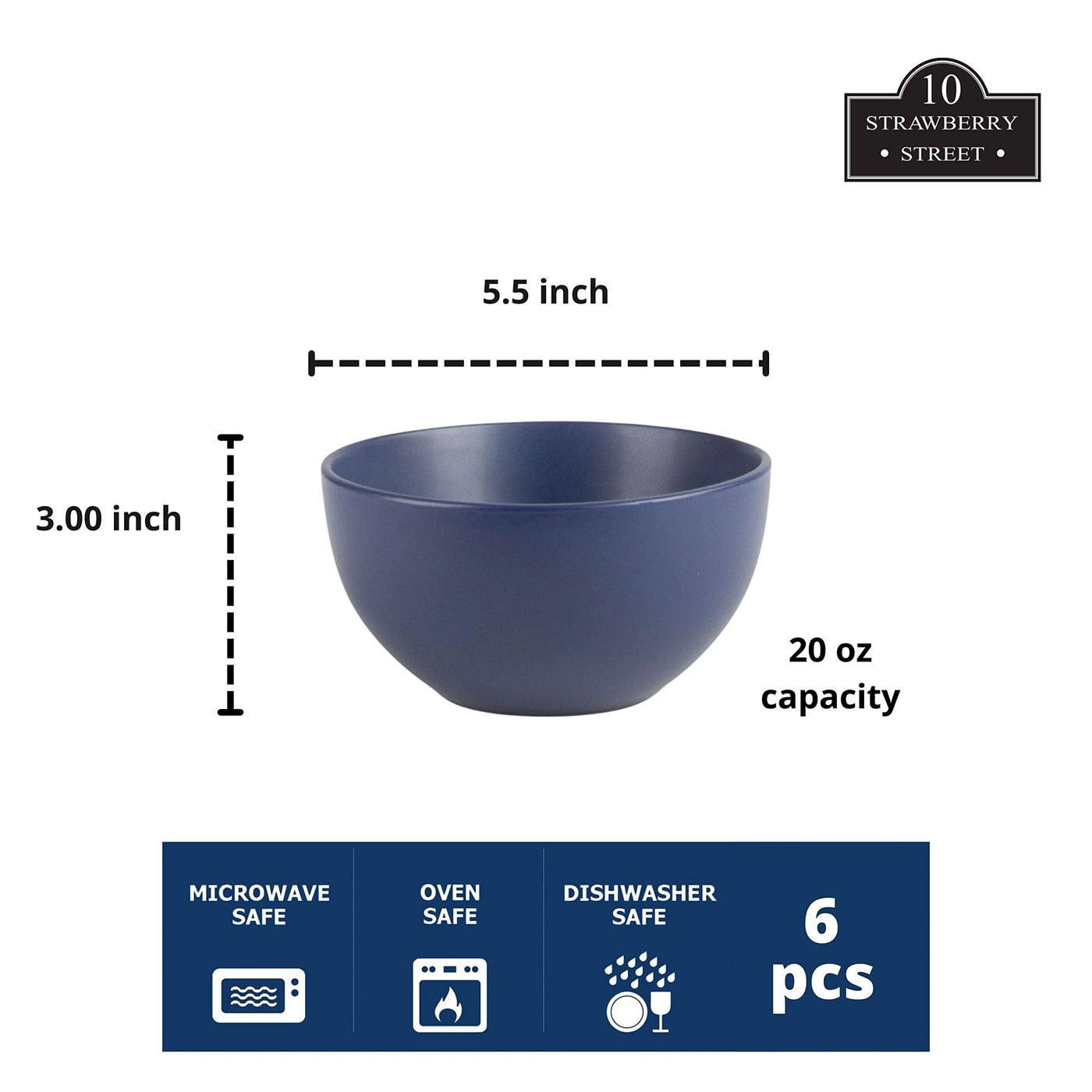 10 Strawberry Street Wazee Matte 5516oz cereal Bowl, Set of 6, Midnight Blue