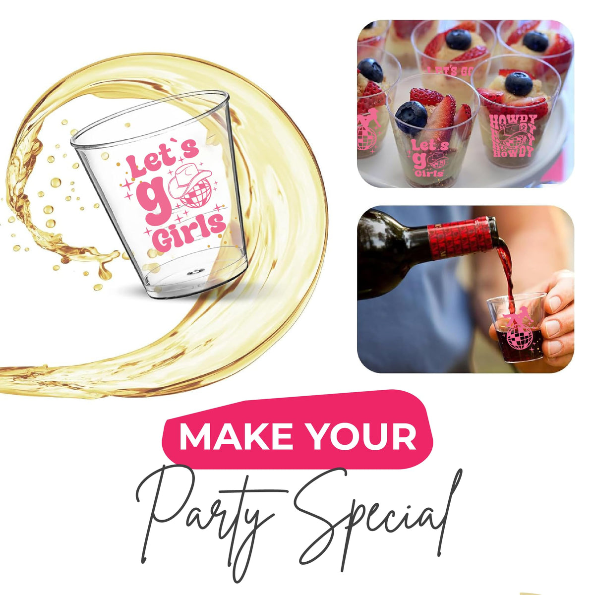 100 Pcs Disco Cowgirl Bachelorette Shot Glasses - 2 Oz Disposable Shot Glasses For Disco Cowgirl Party Decorations - Clear Plast