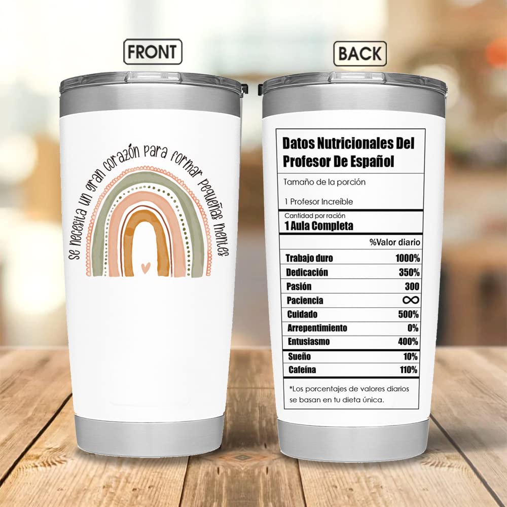 - Q: What makes this tumbler a good gift for a Spanish teacher? A: This tumbler incorporates an inspirational message that shows appreciation and respect for teachers, making it a thoughtful gift for Spanish educators.