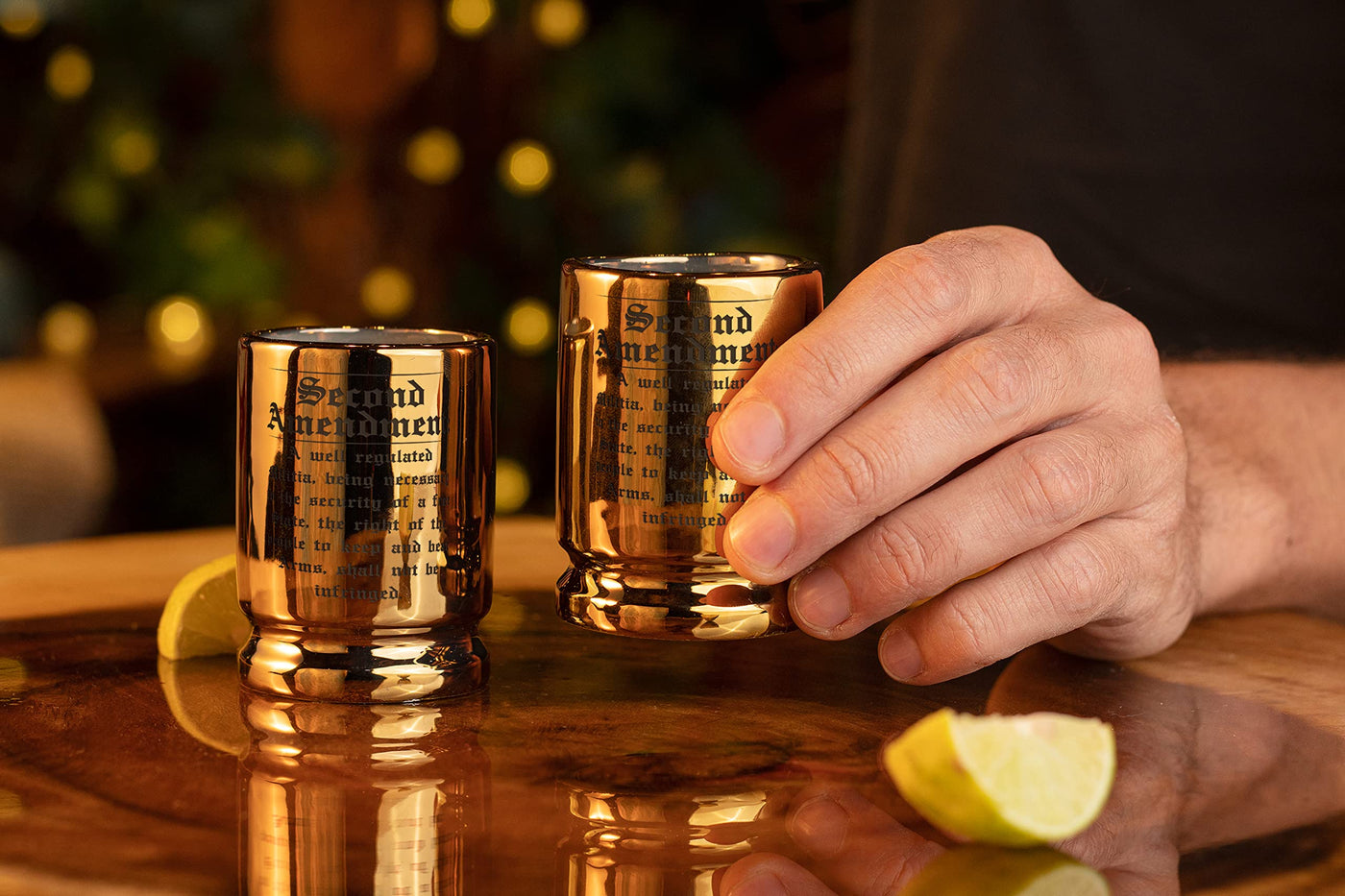 2A 50 Cal Brass Ceramic Shot Glasses - Set Of 2 - Engraved 2A