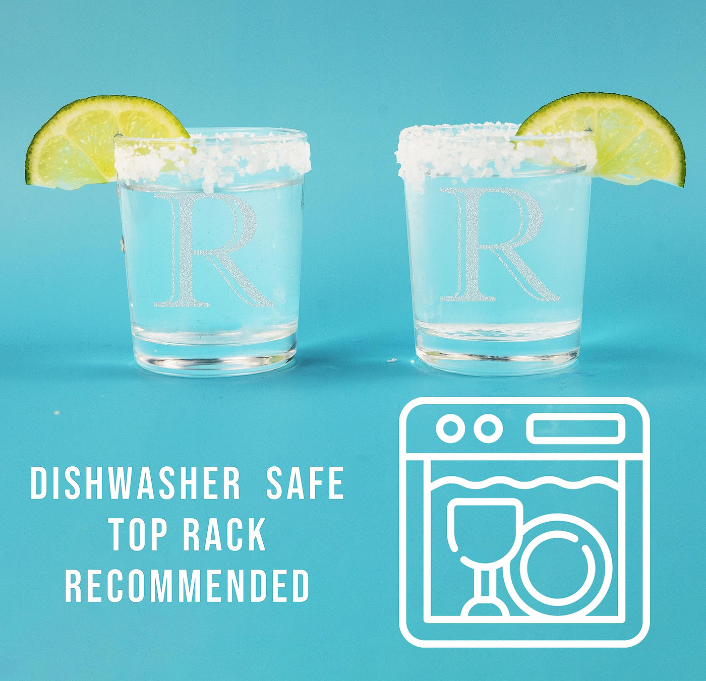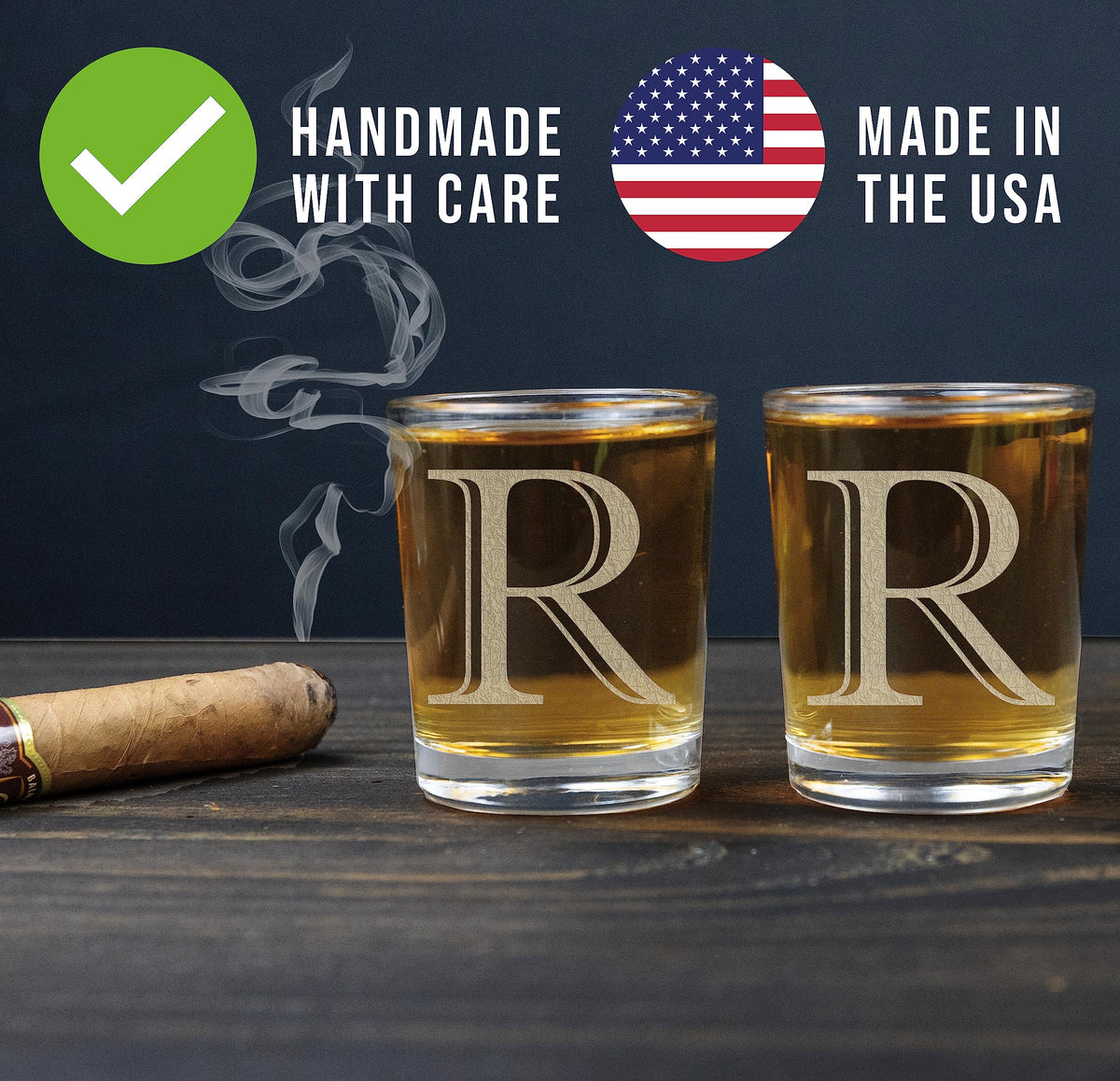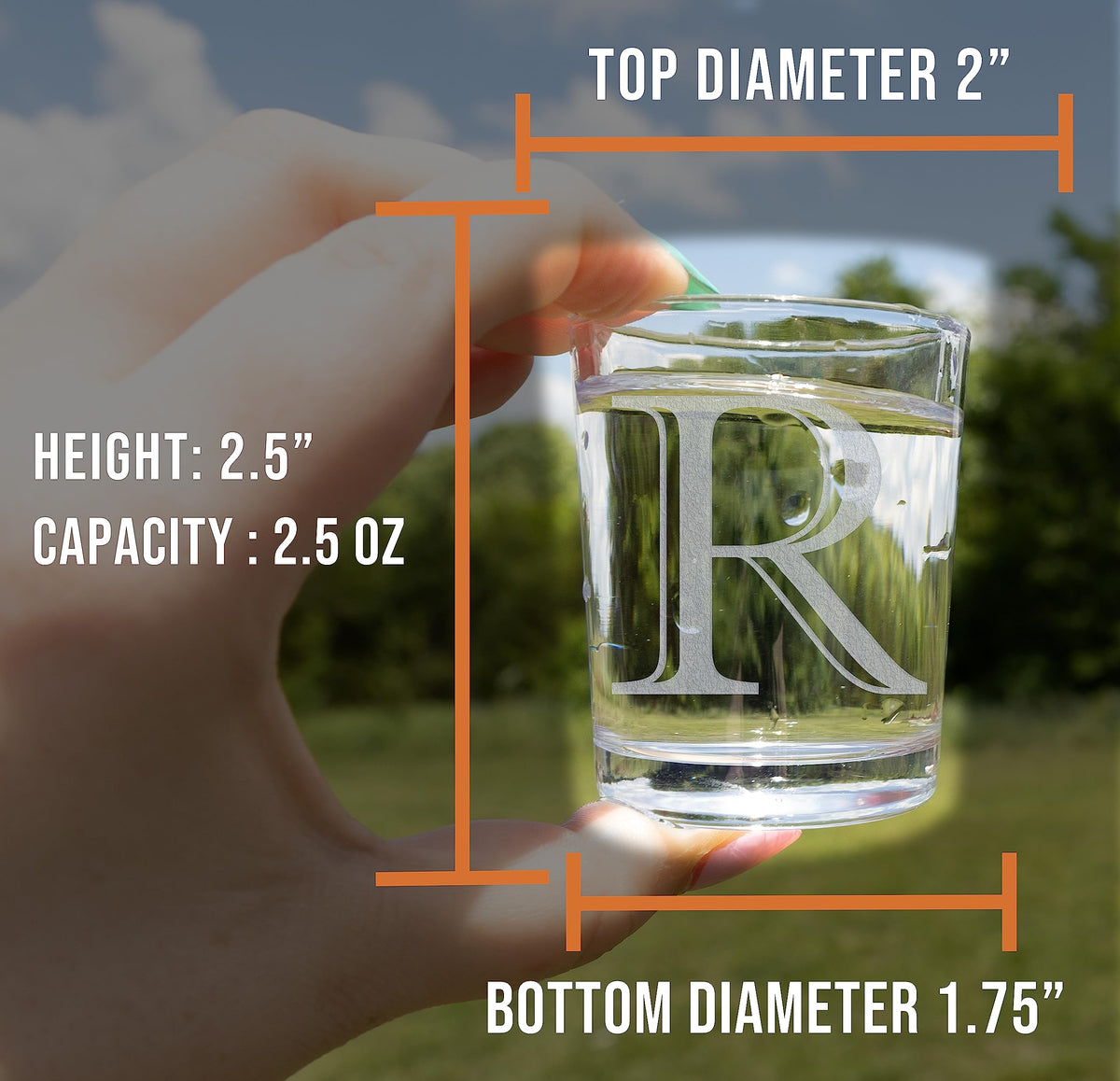 2Pk Etched Monogram 2.5Oz Shot Glasses (Letter R) A-Z Personalized Shot Glass, Custom Shot Glasses, Set Of Two Shot Glasses, Ini