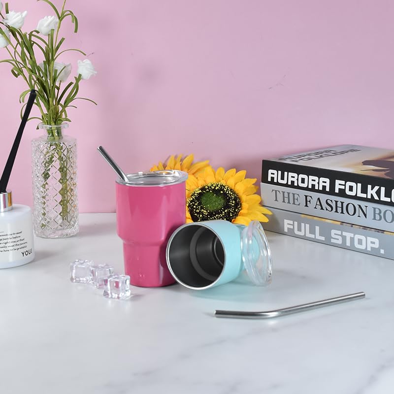 Agh 3 Oz Mini Tumbler Shot Glass With Straw And Lid Colored Stainless Steel Sublimation Tumblers Double Wall Vacuum Insulated Cu