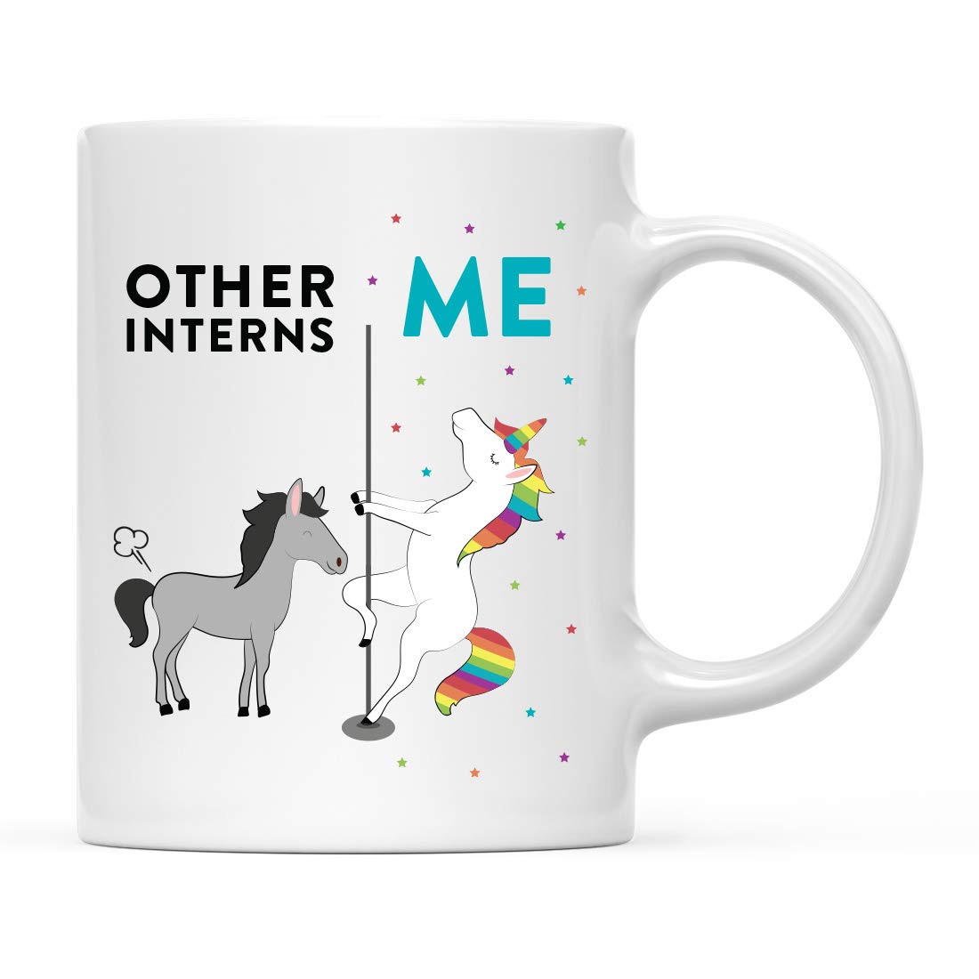 Andaz Press Funny Quirky 11oz. Ceramic Coffee Tea Mug Thank You Gift, Other Interns Me, Horse Unicorn, 1-Pack