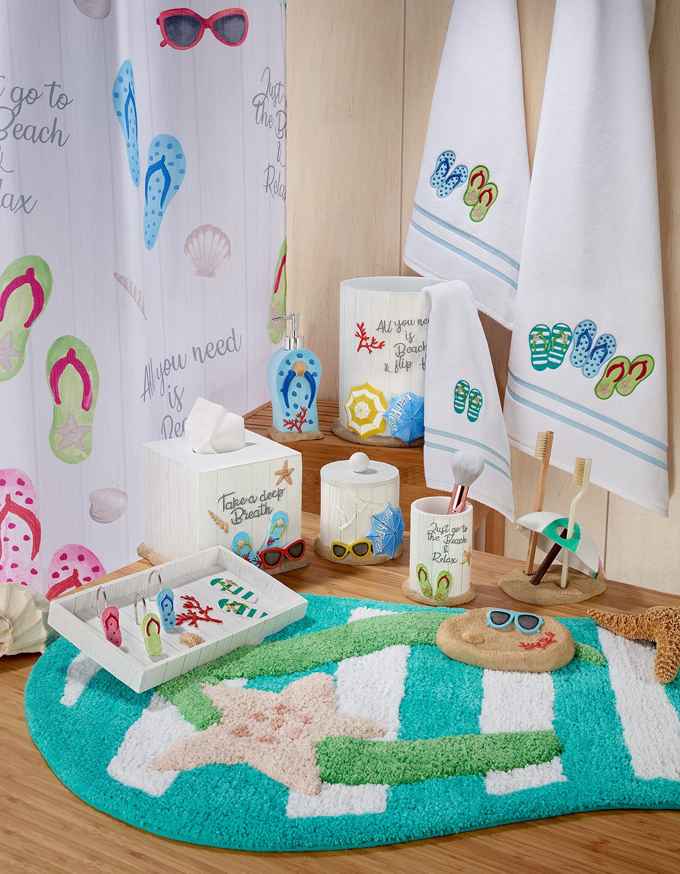 - Q: Are there other items in the Beach Mode Collection? A: Yes, the Beach Mode Collection includes coordinating pieces such as shower curtains, towels, wastebaskets, and tissue covers.