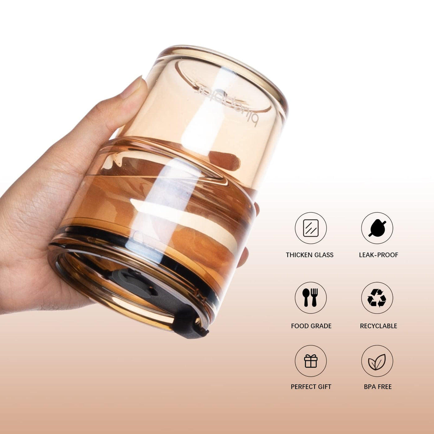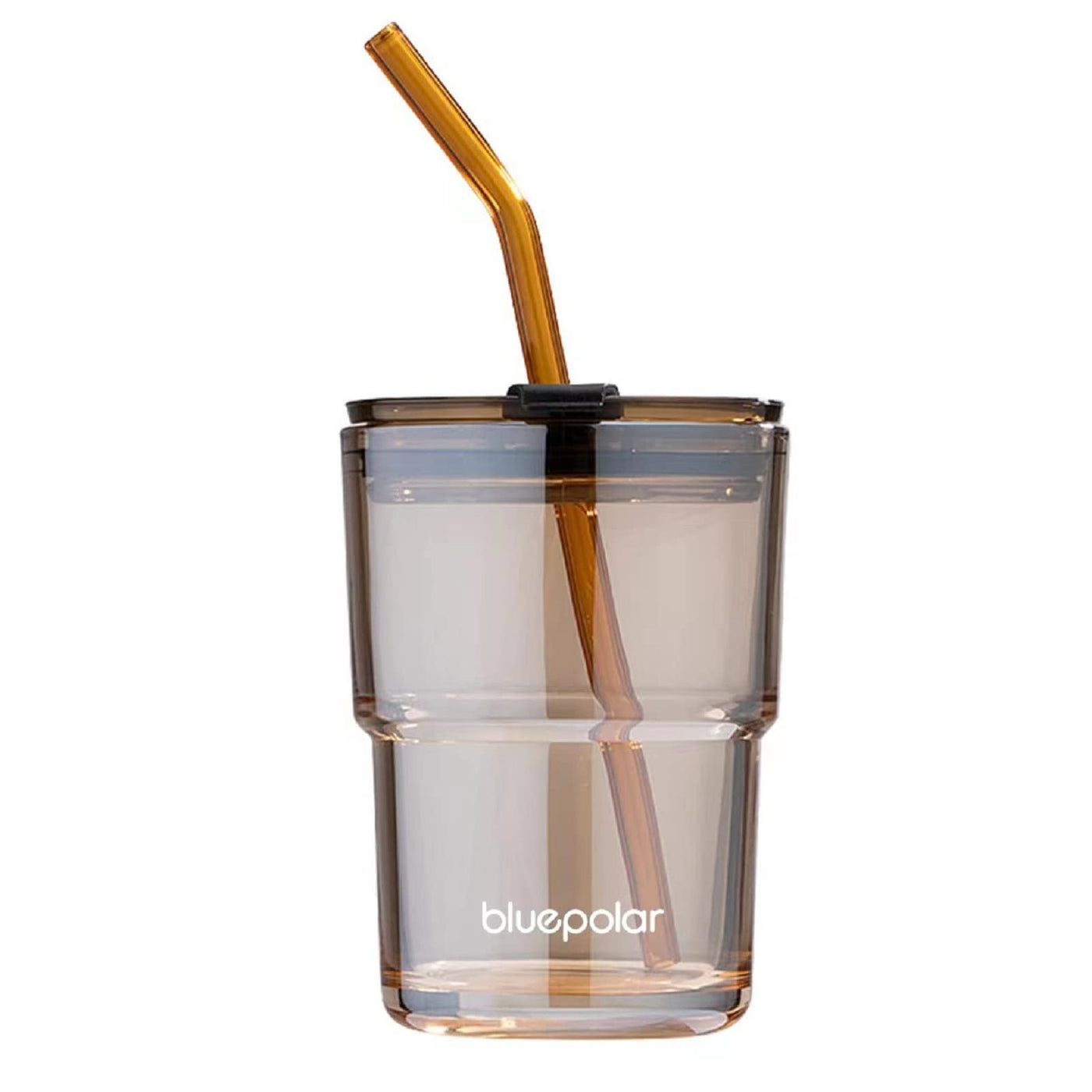 Bluepolar 13Oz/400Ml Glass Water Tumbler With Straw And Lid Sealed Carry On Thick Wall Iced Coffee Cup Glass Cup For Water, Iced
