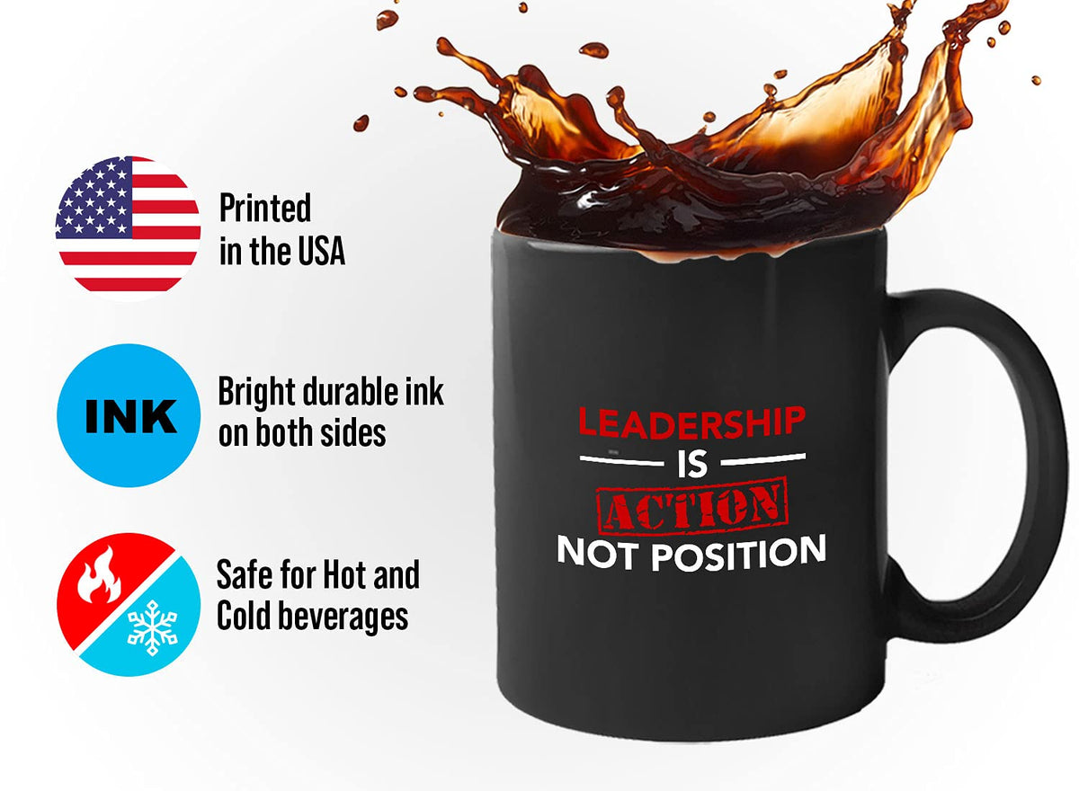 - Q: What type of design does the mug feature? A: The mug features an inspirational design with a message that emphasizes leadership, making it a meaningful gift for leaders.