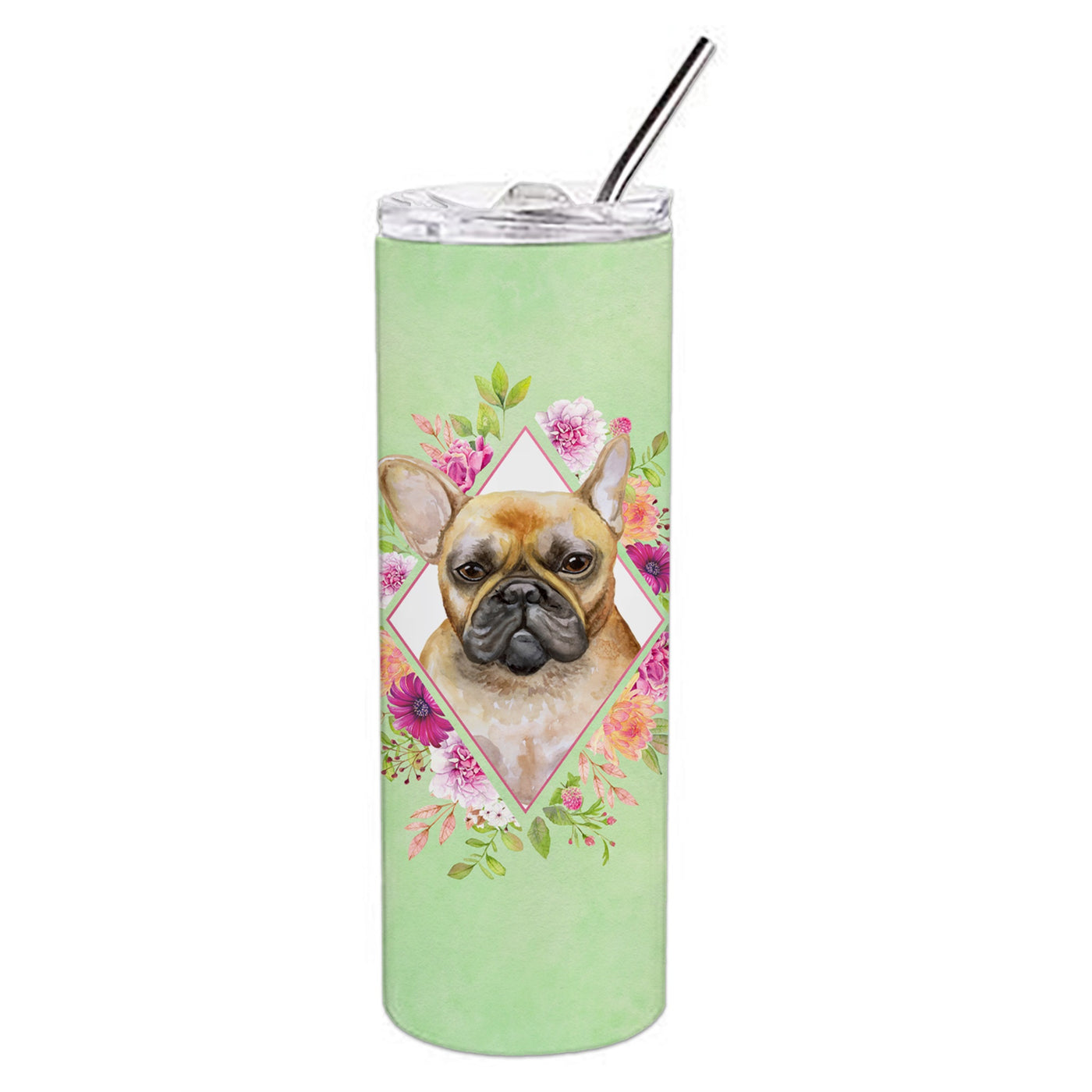 'Caroline's Treasures Fawn French Bulldog Green Flowers Double Walled Stainless Steel 20 oz Skinny travel-insulated-tumblers Multicolor''