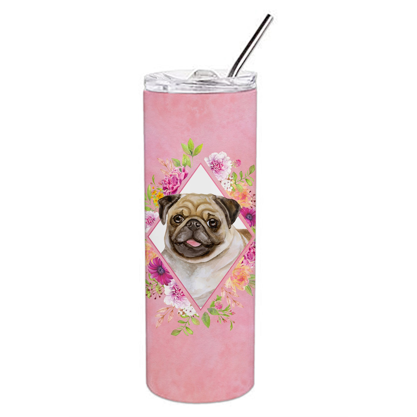 'Caroline's Treasures Fawn Pug Pink Flowers Double Walled Stainless Steel 20 oz Skinny travel-insulated-tumblers Multicolor''
