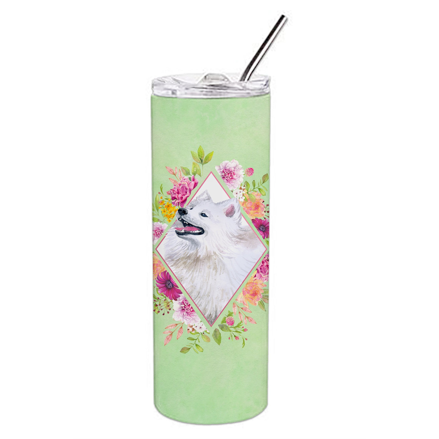 'Caroline's Treasures Samoyed Green Flowers Double Walled Stainless Steel 20 oz Skinny travel-insulated-tumblers Multicolor''