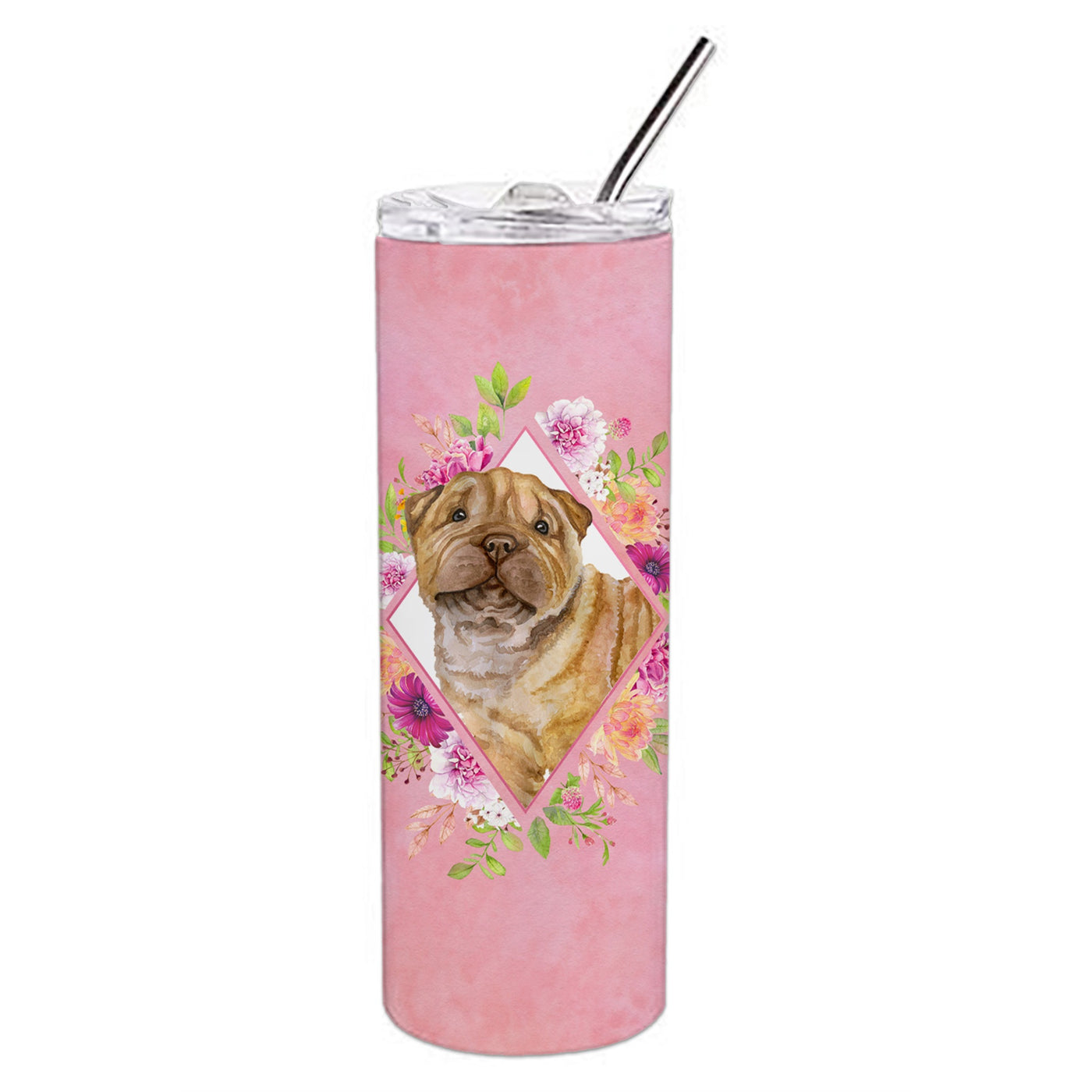 'Caroline's Treasures Shar Pei Pink Flowers Double Walled Stainless Steel 20 oz Skinny travel-insulated-tumblers Multicolor''