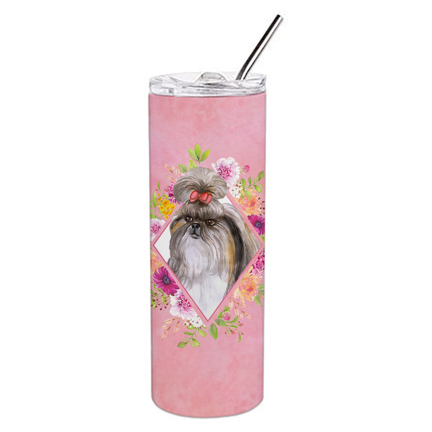 'Caroline's Treasures Shih Tzu Pink Flowers Double Walled Stainless Steel 20 oz Skinny travel-insulated-tumblers Multicolor''