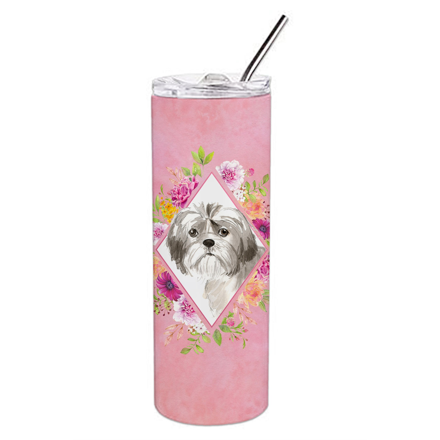 'Caroline's Treasures Shih Tzu Puppy Pink Flowers Double Walled Stainless Steel 20 oz Skinny travel-insulated-tumblers Multicolor''