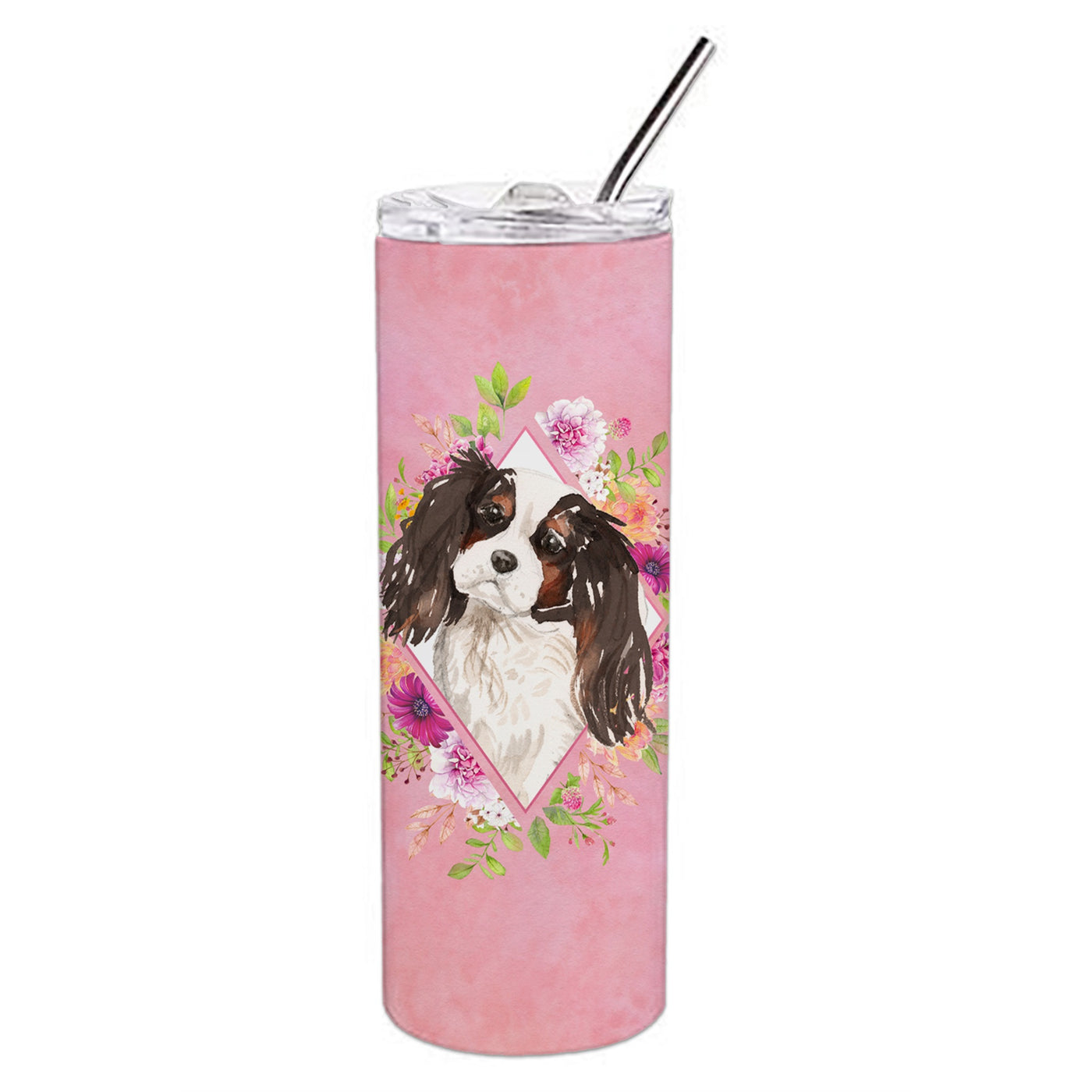 'Caroline's Treasures Tricolor Cavalier Spaniel Pink Flowers Stainless Steel 20 oz Skinny travel-insulated-tumblers Multicolor''