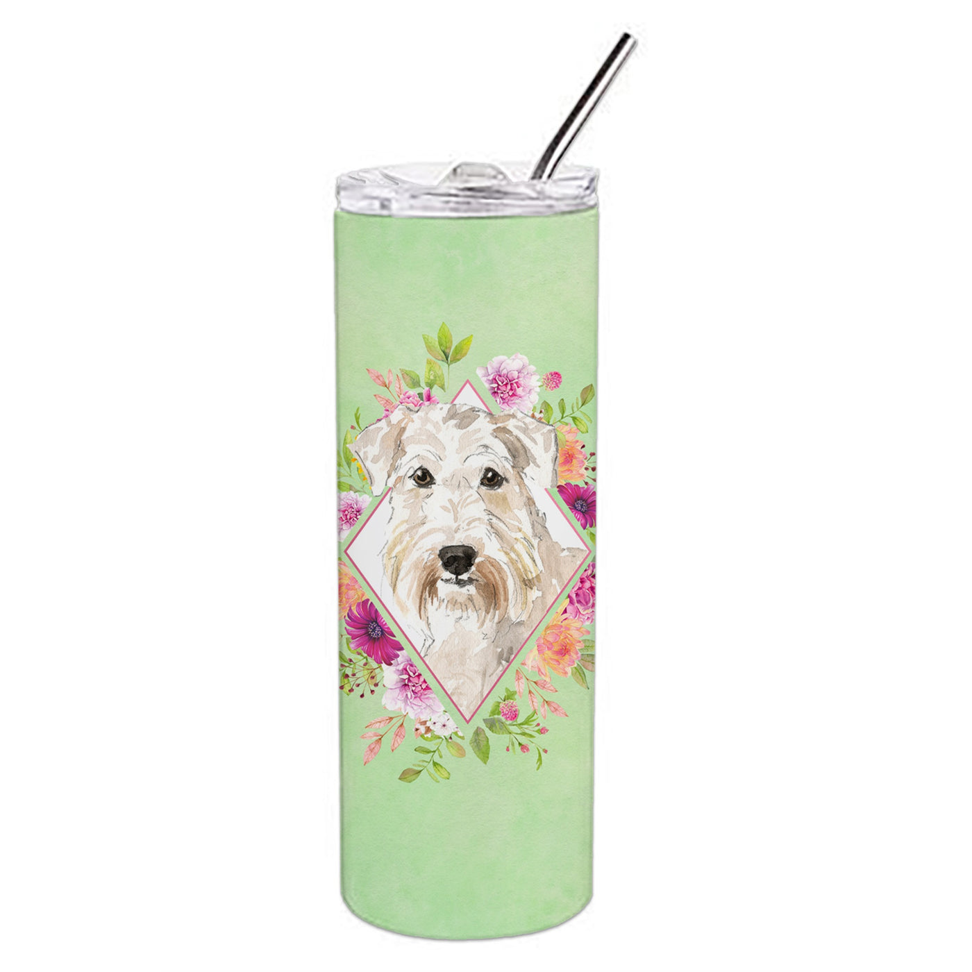 'Caroline's Treasures Wheaten Terrier Green Flowers Double Walled Stainless Steel 20 oz Skinny travel-insulated-tumblers Multicolor''