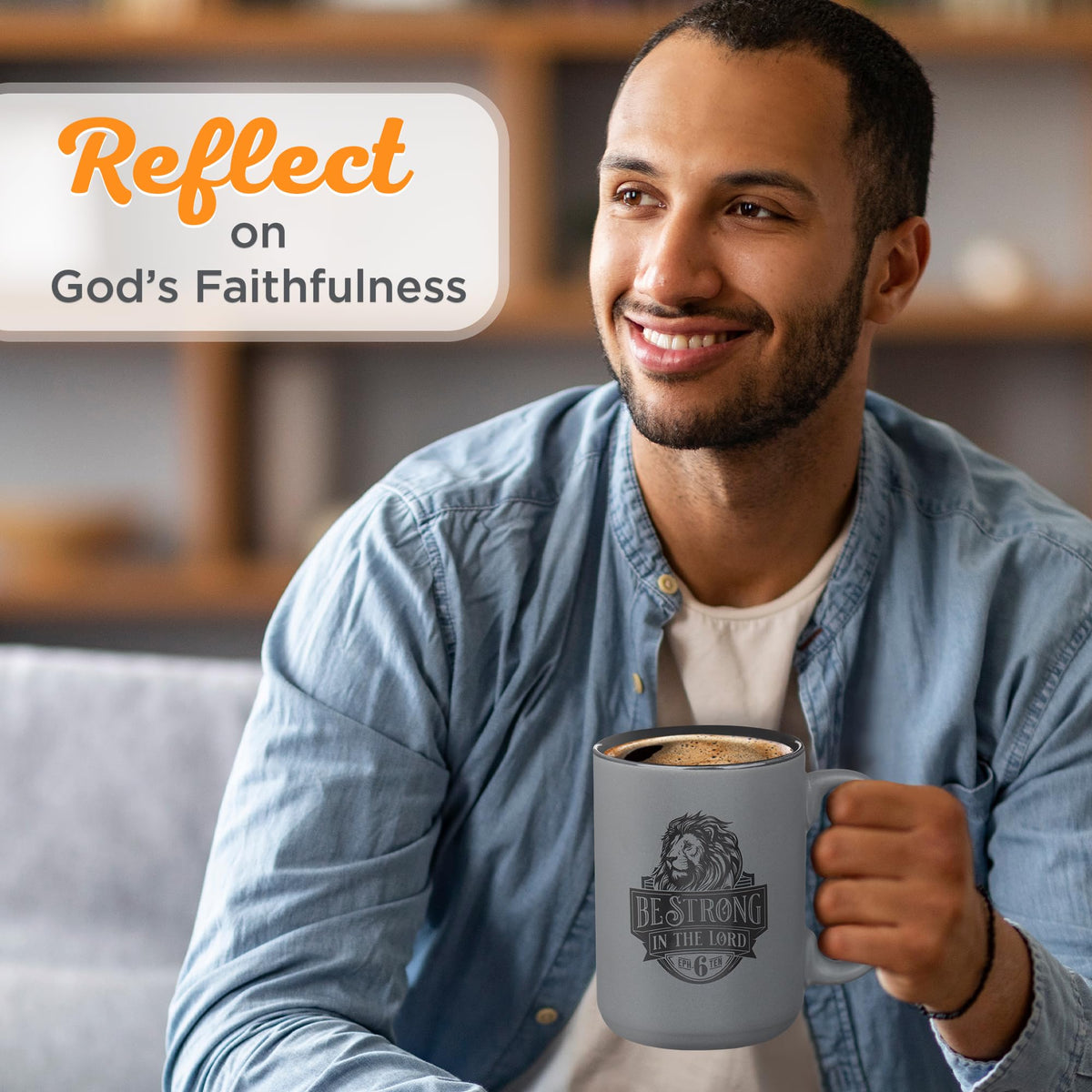 Christian Art Gifts Large Ceramic Coffee & Tea Mug for Men & Women: Be Strong Bible Verse, Gray & Black, 14 oz.