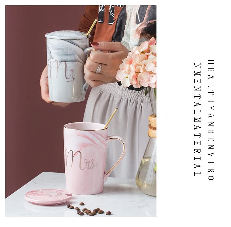 CPENSUS Ceramic Marble Finish Coffee Mug With Lid & Spoon For Anniversary Wedding Engagement Valentine Gifts For Couple 380 ML