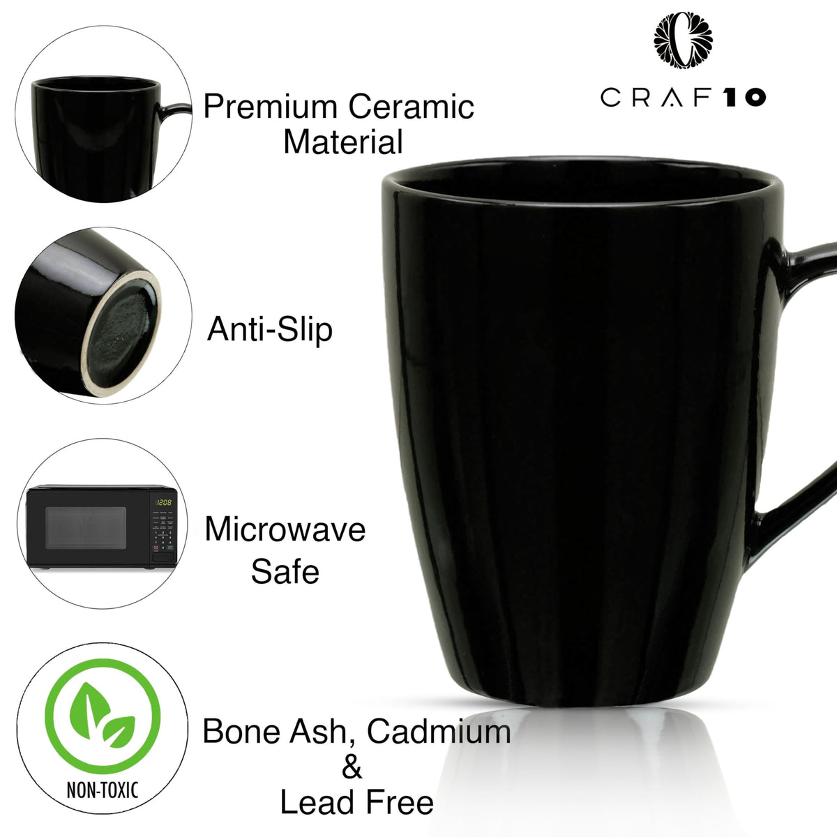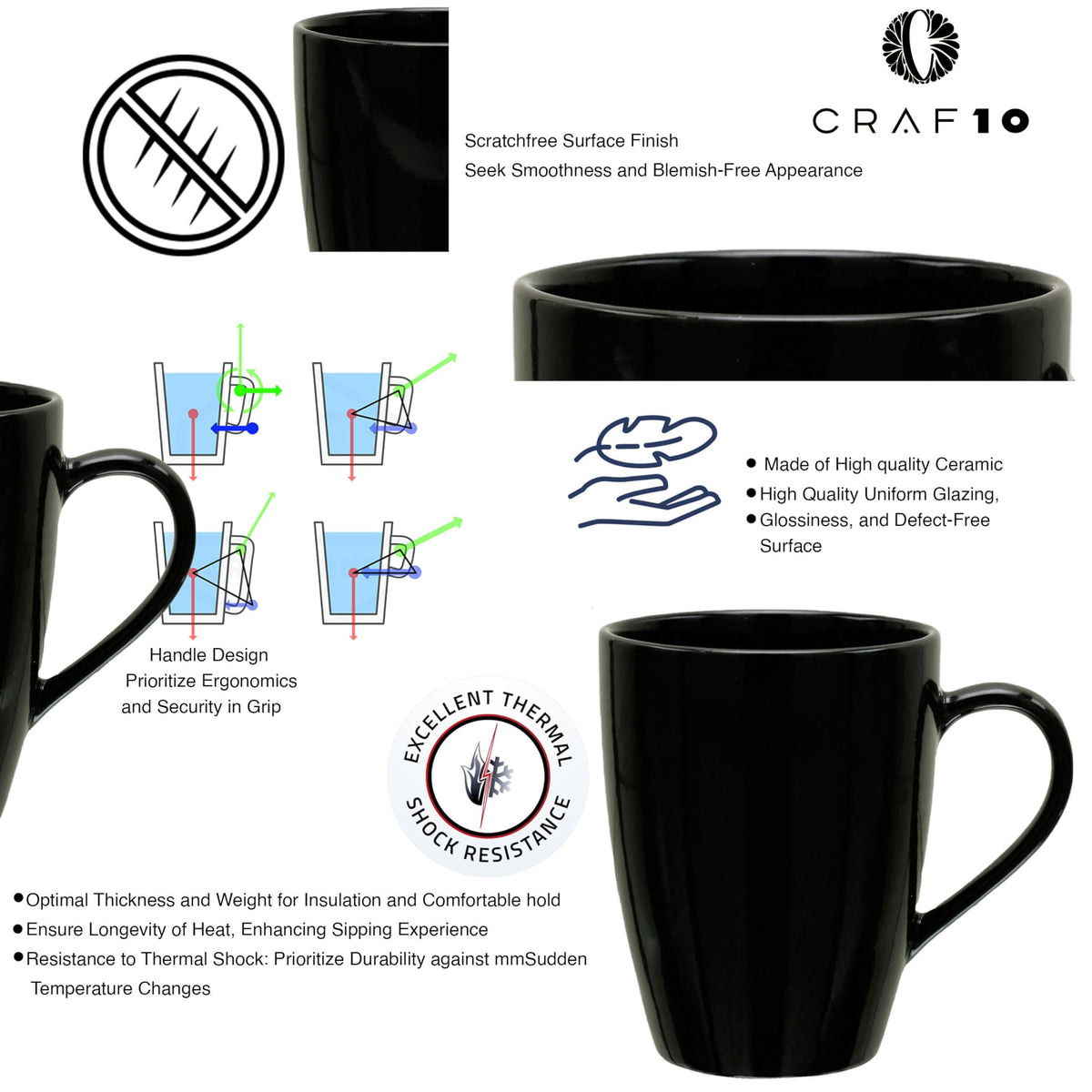 Craf10 Exquisite Solid Ceramic Coffee Mugs - Black Color,Microwave Safe- 340Ml Capacity, Dishwasher & Freezer Safe