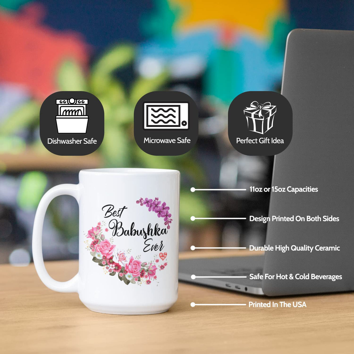 Creator's Cove Babushka mug Best Grandma Ever mug Russian floral coffee cups, Grandmom mug flower coffee mugs from granddaughter