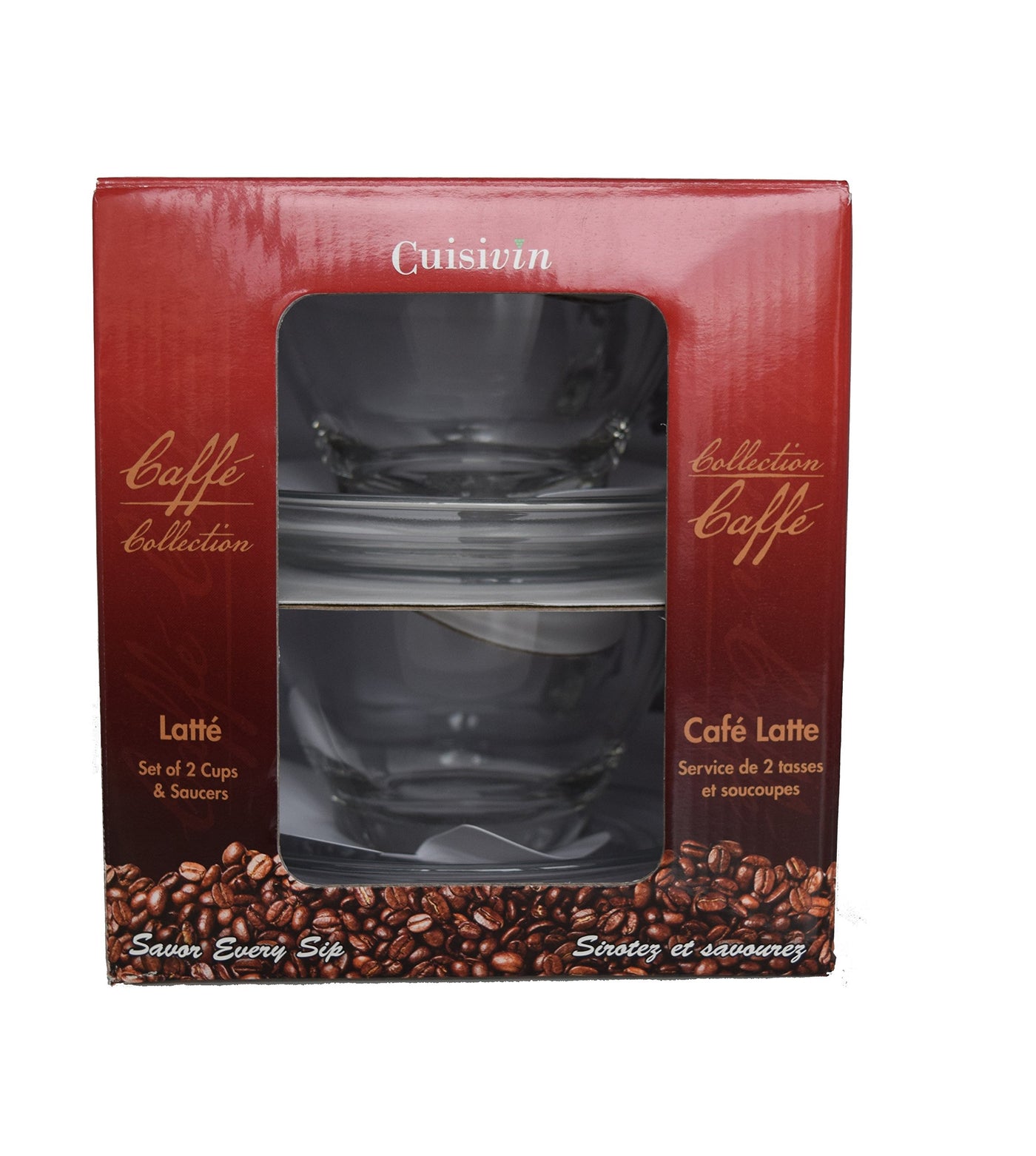 - Q: What is included in the Cuisivin Caffé Collection Latte set? A: The Cuisivin Caffé Collection Latte set includes 2 latte cups with a 9 oz capacity and 2 matching saucers, all beautifully packaged in a gift box.